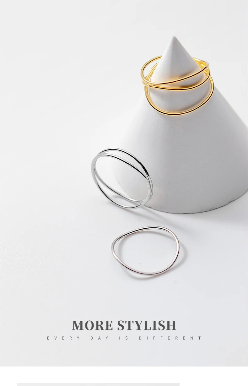 MloveAcc 925 Серебряные Простые линии, круглые кольца на палец для женщин и девушек, женские модные повседневные кольца для вечеринок, ювелирные изделия