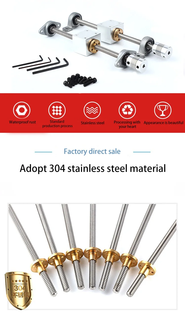 1 компл., 3D-принтер с ЧПУ, T8, длина свинцового винта 100-600 мм, диаметр 8 мм, трапециевидный винт, набор винтов с гайкой, горизонтальный держатель