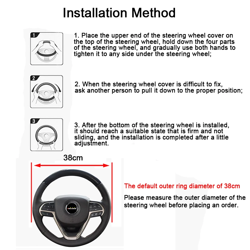 100% новый и высокое качествоЗабавный, модный и высокопроизводительный чехол на руль.Классический вид и обновленный вид.Придает комфорт и стиль любому транспортному средству, защищая при этом оригинальный руль транспортного средства.Характеристики: