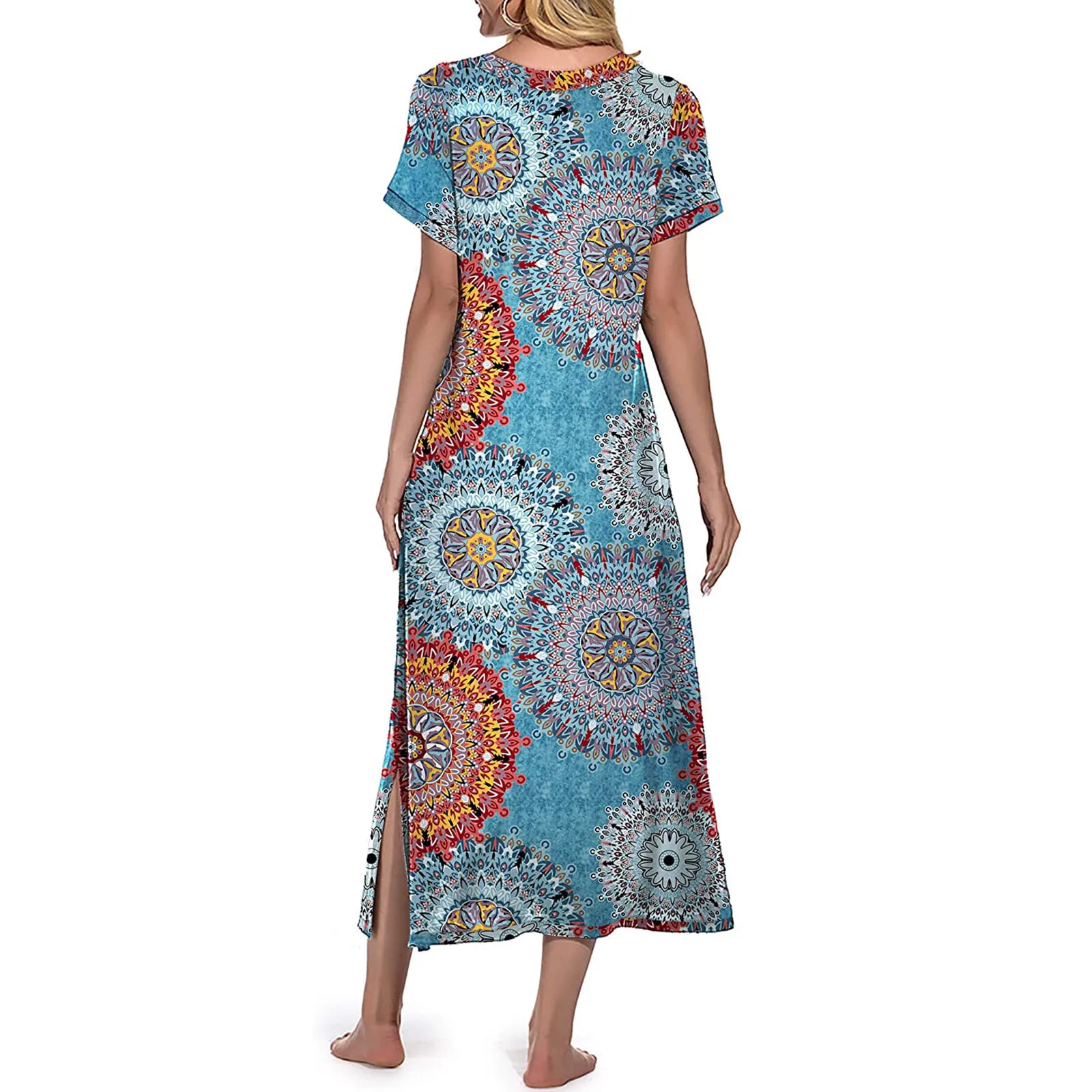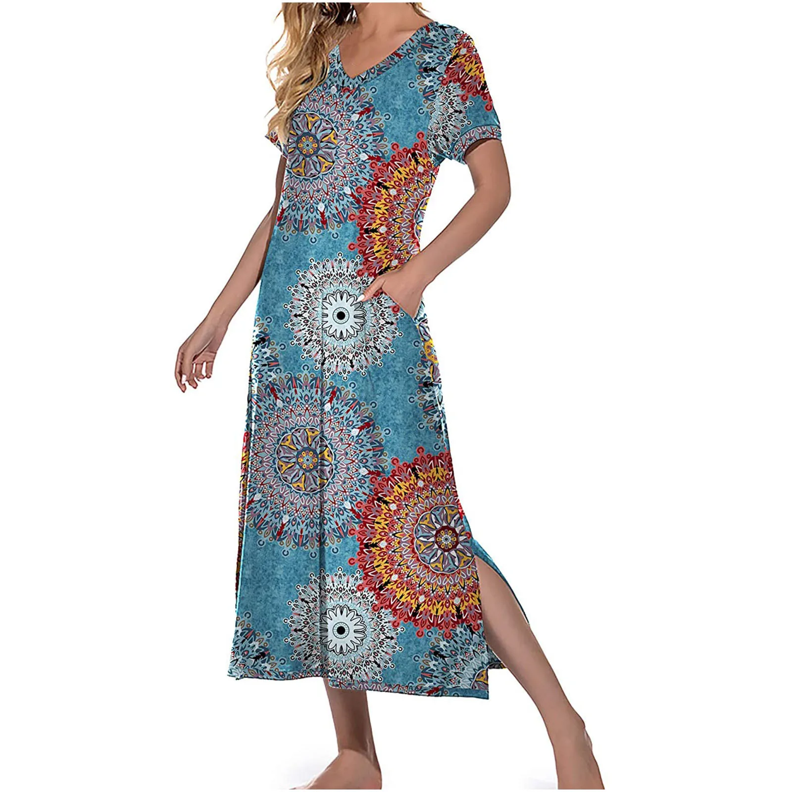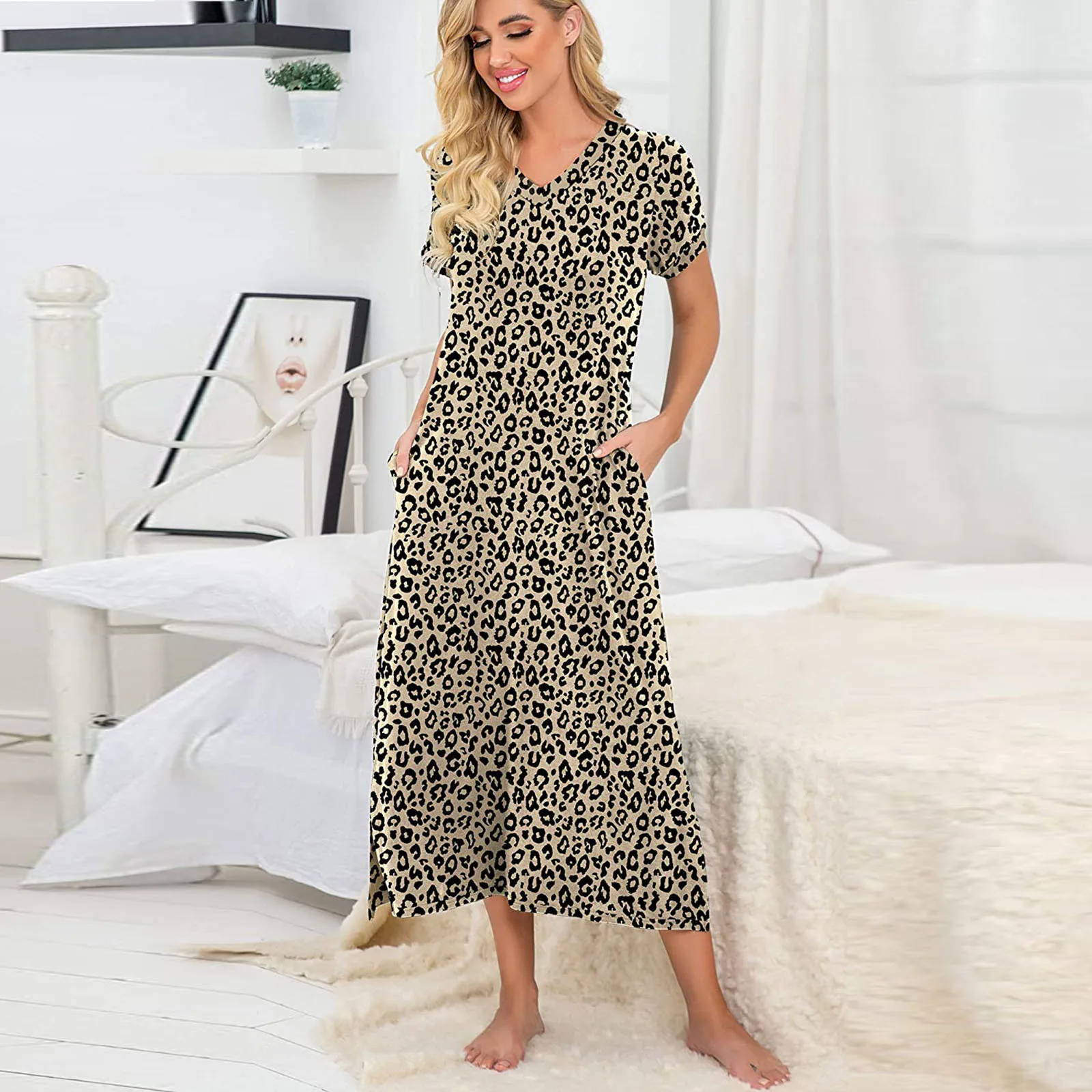 Женское платье-рубашка с карманами, женское платье миди с коротким рукавом и V-образным вырезом, мягкая одежда для отдыха, повседневная одежда для сна с карманами, платья