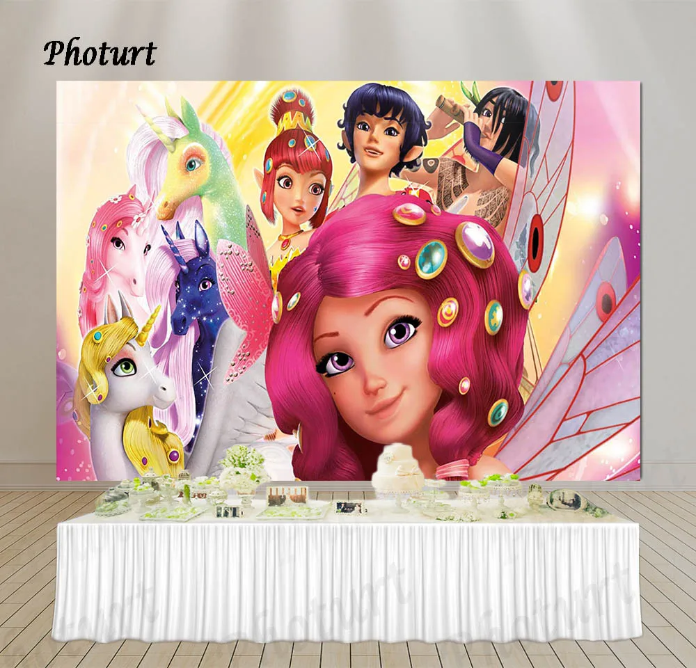 Фотофон Mia and Me фон для детской вечеринки на день рождения Розовая фея Единорог полиэстер винил фото плакат Фотообои