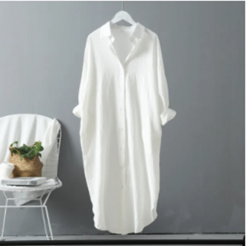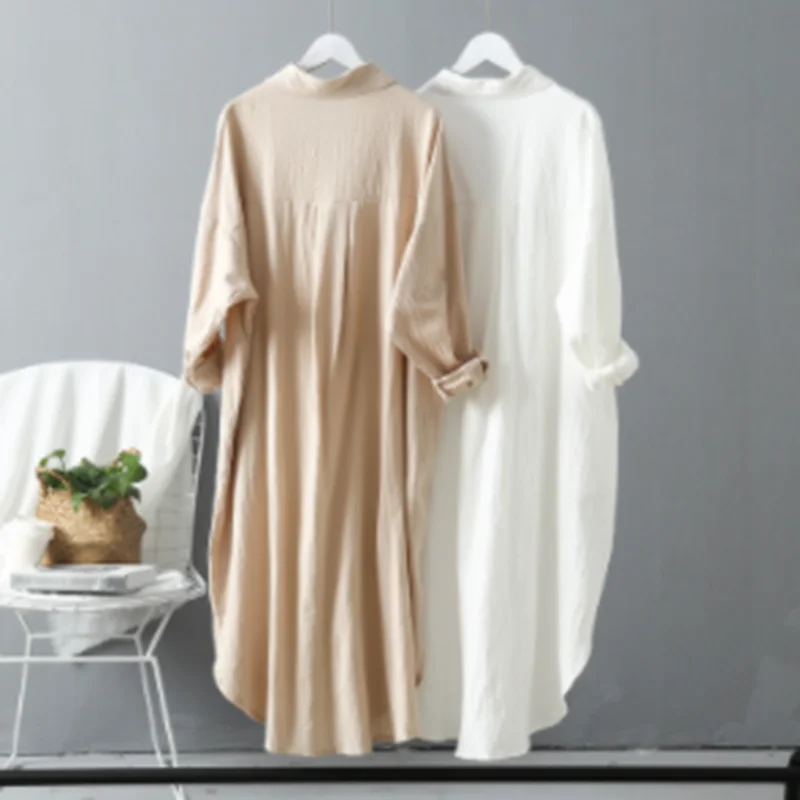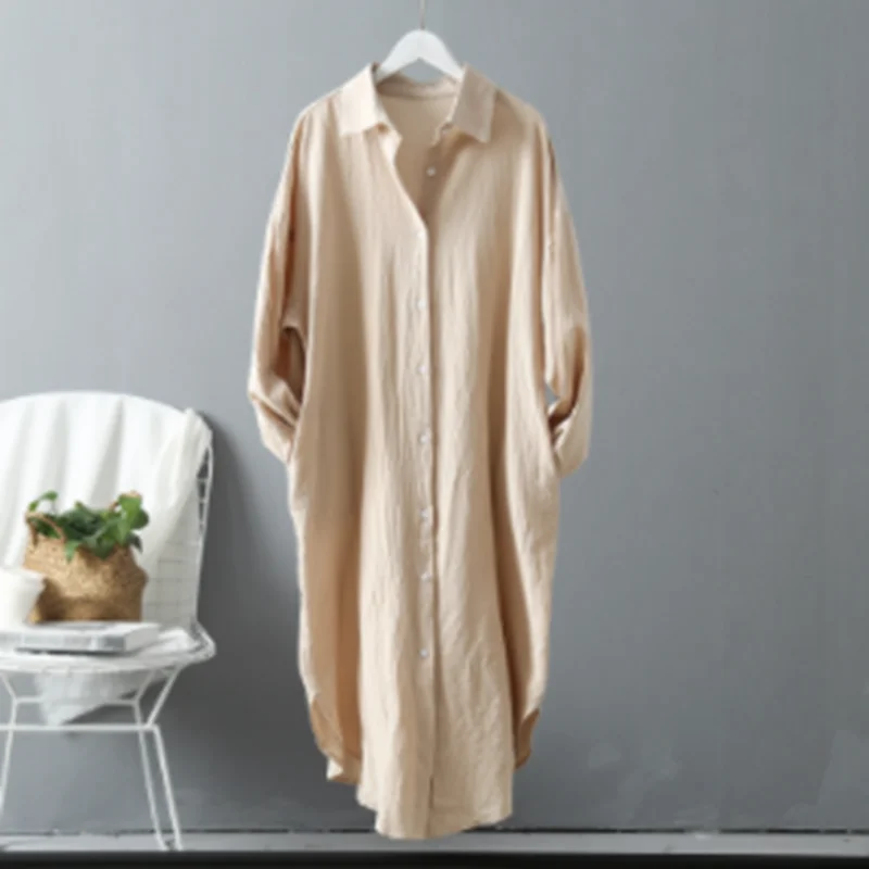 Платье-рубашка женское длинное из хлопка и льна, винтажная блузка-р...