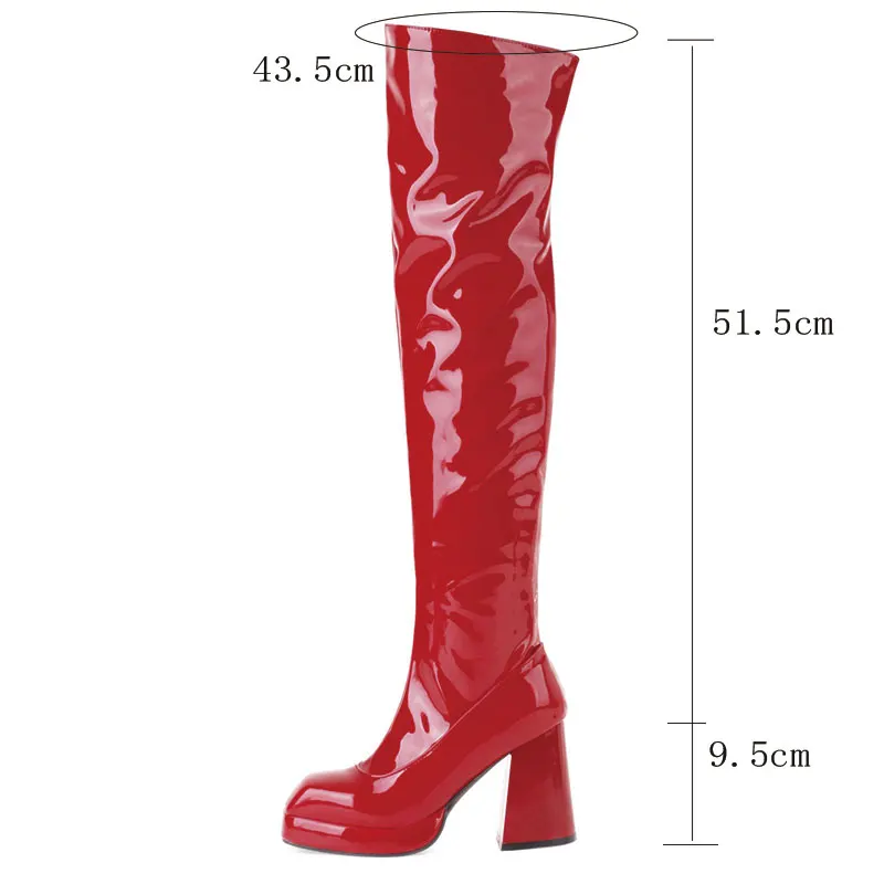 Пикантные лакированные кожаные высокие сапоги до бедра, женские сап...