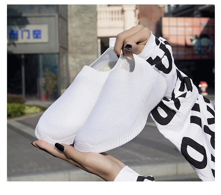Кроссовки-носки женские сетчатые, вязаные, лоферы, без шнуровки, по...