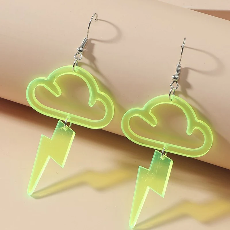 Новые модные неоновые серьги с зеленым розовым облаком и молнией дл...