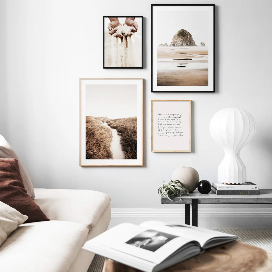 Настенная картина с изображением горных зерен песка, цветов Далии, пляжной травы, настенная Картина на холсте, Постер в скандинавском стиле, декоративная картина для гостиной