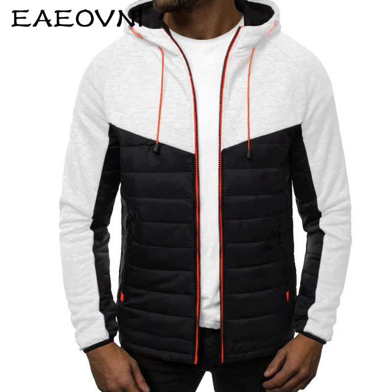 EAEOVNI Мужская куртка с капюшоном, приталенная куртка с длинными рукавами, лоскутный кардиган, осенне-зимняя мужская куртка на молнии, пальто, 2021 новые толстовки