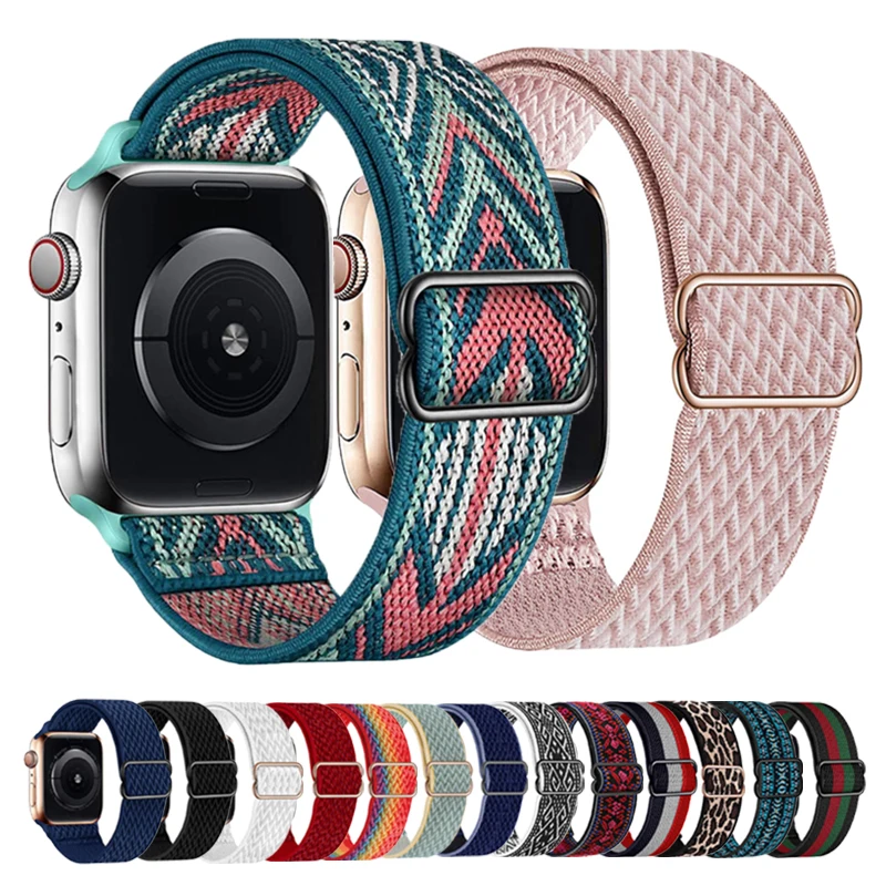 Ремешок для Apple Watch Band, регулируемый эластичный браслет для часов 44 мм 3 38 мм SE iwatch Series 4 5 6 7 41 мм 45 мм 40 мм 42 мм