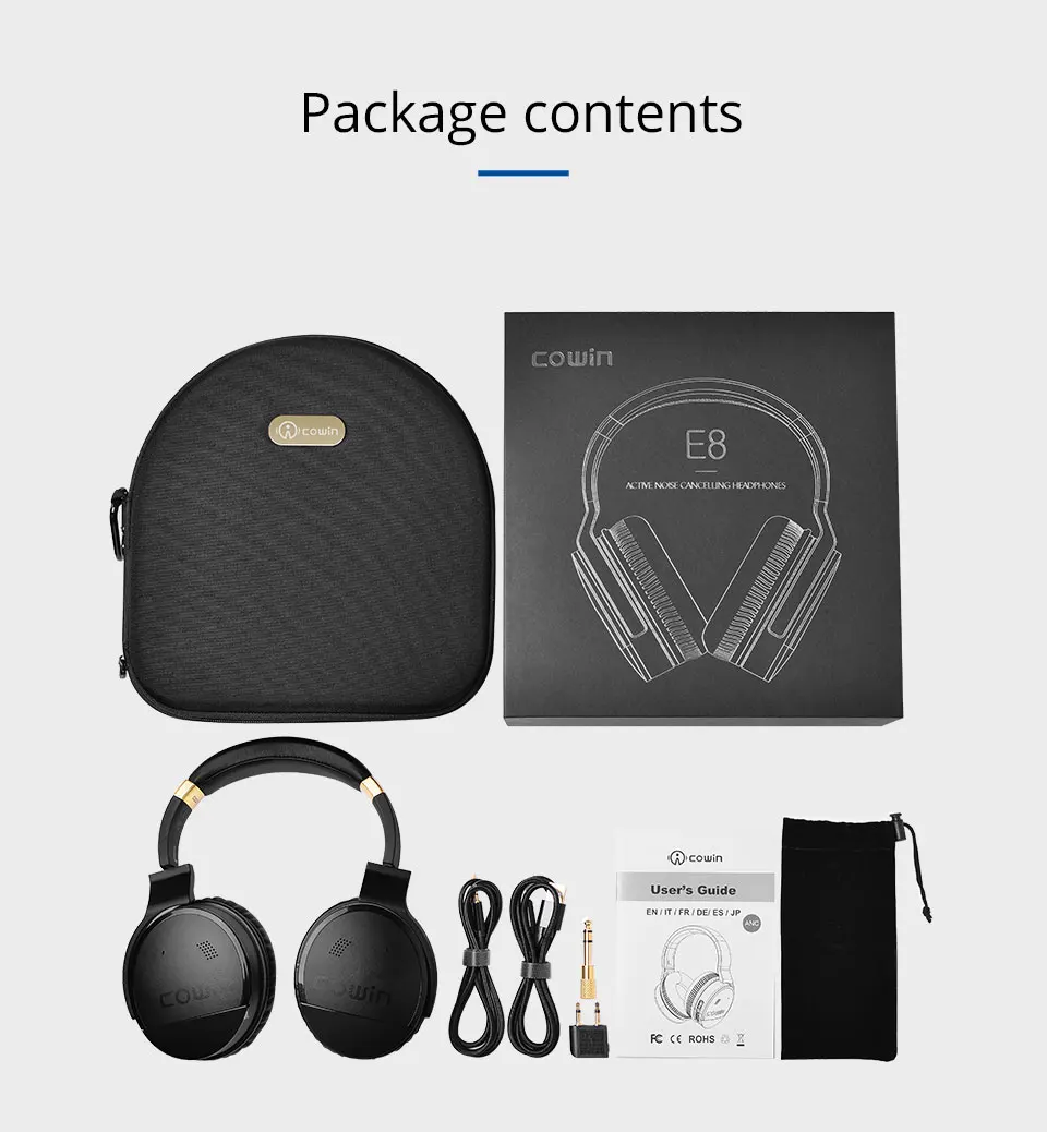 COWIN E8 тщательно выбирает каждый аксессуар, 45 мм драйверы с большой апертурой дают вам четкий и мощный звук, высокопрочный Магнит N50 имеет более высокое разрешение, динамик 32Ω обеспечивает более подробную информацию.