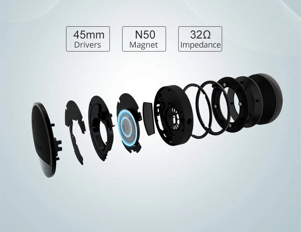 45 мм драйверы с большой апертурой дают вам четкий, мощный и тихий звук. (S/N: ≥ 100 дБ)