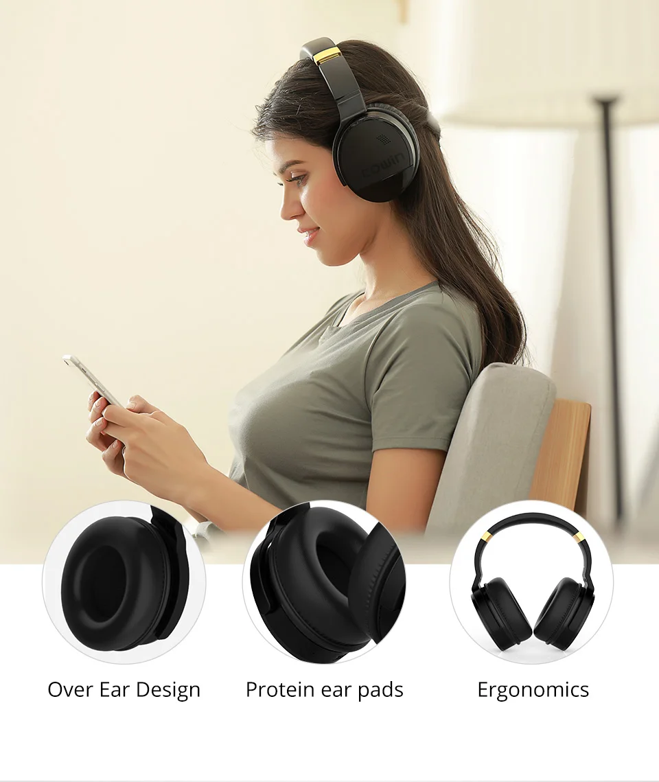 Применение Cowin 10-летней аудио технологии для того чтобы подготовить Cowin E8 с лучшим звуком, четкие средние и высокие частоты, глубокие басы, что дает вам больше музыки детали.