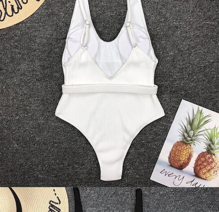 Женский раздельный купальник в рубчик, 2021 сексуальный сплошной цельный купальный костюм с открытой спиной, Летний Пляжный женский белый купальник
