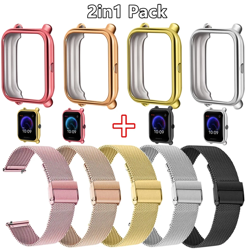 Ремешок для часов 2 в 1, металлический защитный чехол для Xiaomi Amazfit GTS 2 Mini Bip U Lite