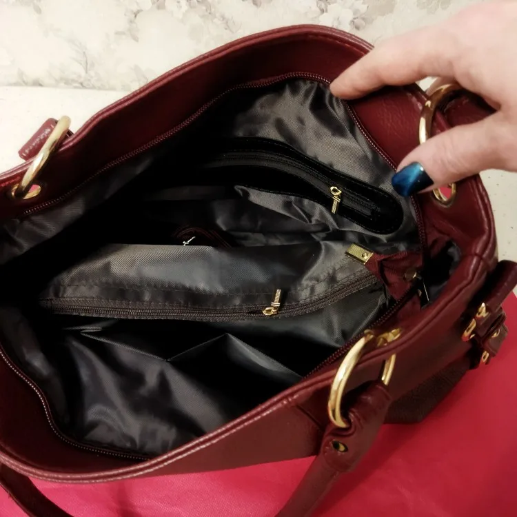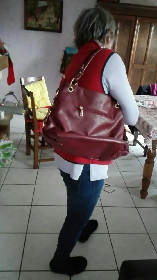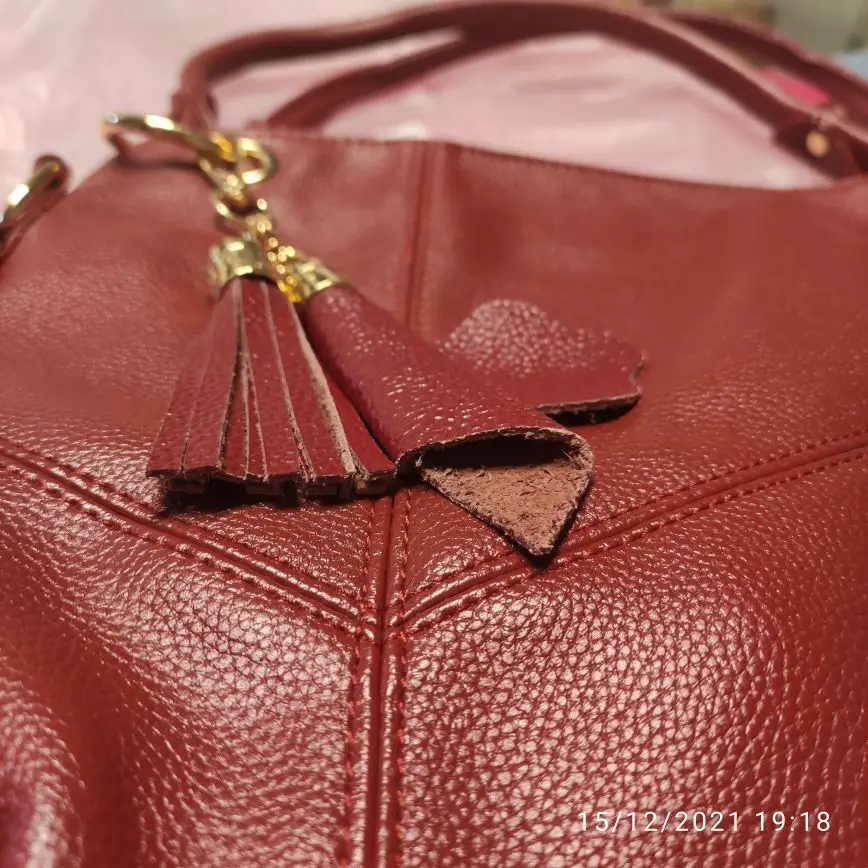 Хорошая сумка соответствует описанию, но цвет не красный, а бордовый, а карманы немного маленькие. Сумка изготовлена из искусственной кожи, а украшения-из натуральной кожи согласно описанию. Есть небольшой запах резины, который, я надеюсь, скоро исчезнет. Прибыл в Италию в течение 18 дней.