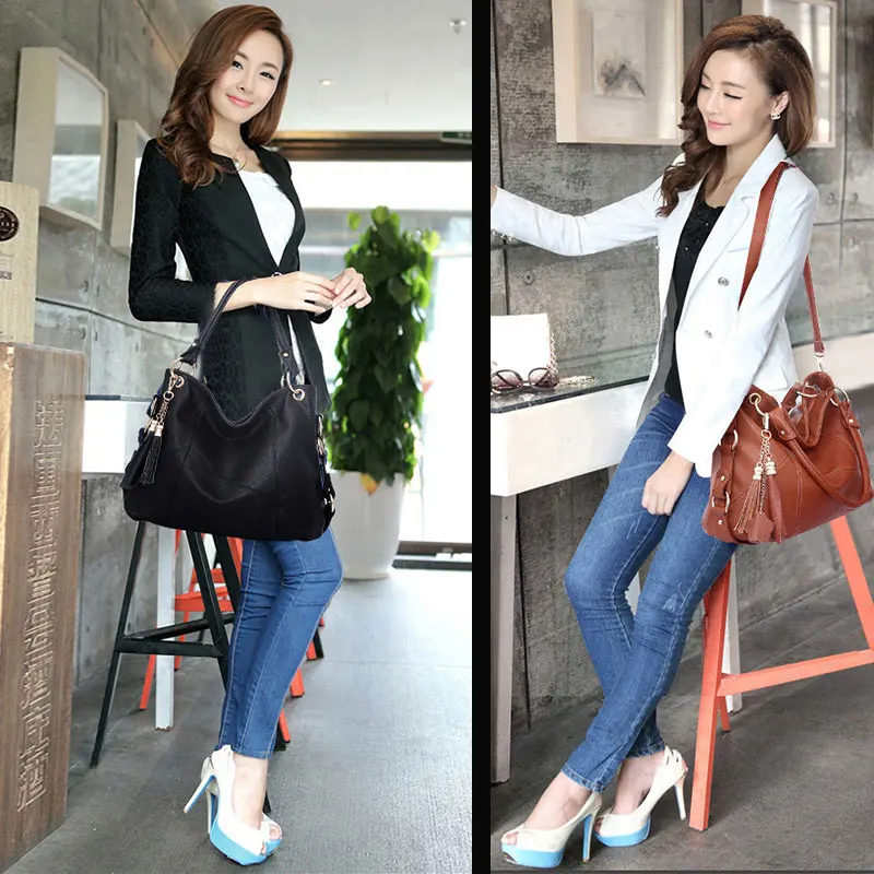 Модная сумка через плечо в стиле кисточки, женская сумка из высококачественной искусственной кожи, винтажная сумка через плечо с мягкими ручками, женская сумка-тоут