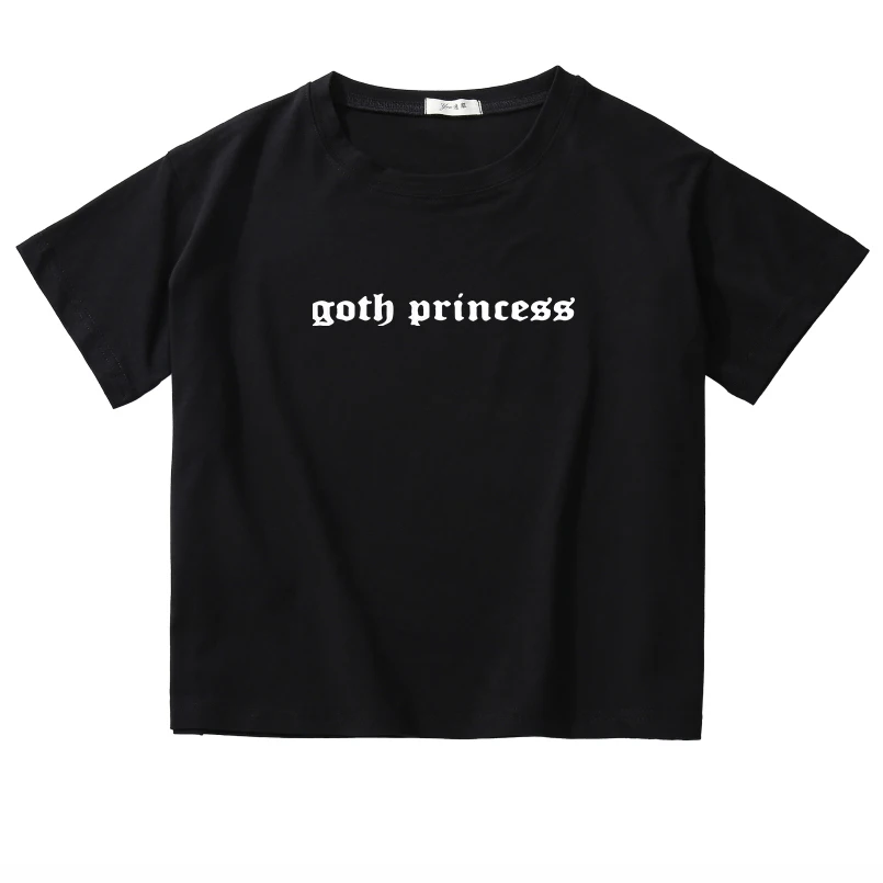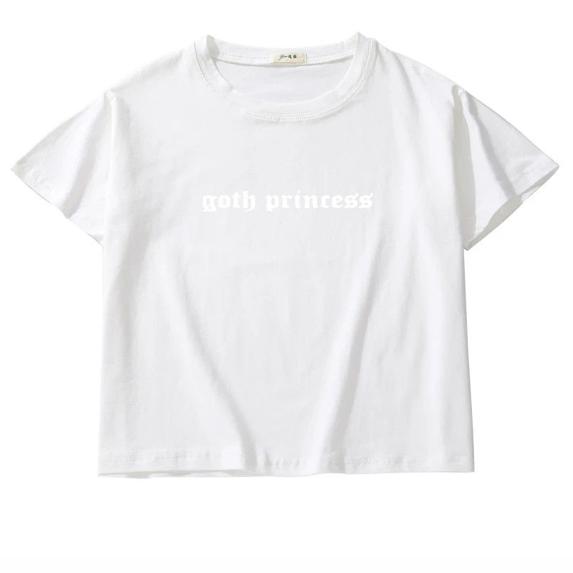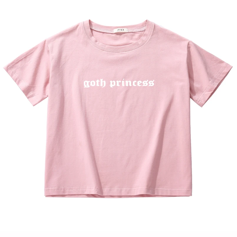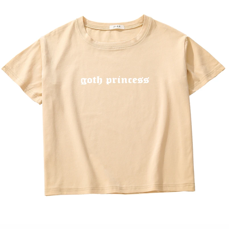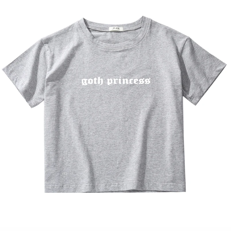 Летняя свободная футболка Goth Princess, винтажный Забавный укороченный топ с надписью для девочек, модные хипстерские короткие футболки, повседневные женские топы большого размера