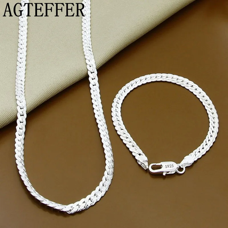 AGTEFFER S925 Стерлинговое Серебро 2 шт 5 мм Полная боковая цепочка ожерелье браслет для женщин мужчин модные ювелирные наборы свадебный подарок