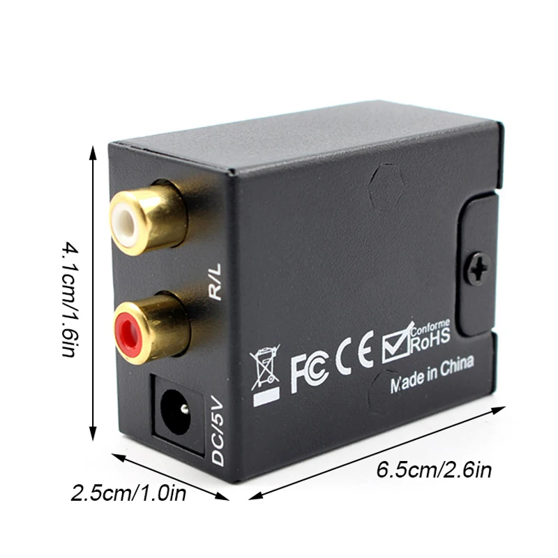Особенности:1. Оптический или цифровой коаксиальный аудиовыход От исходных устройств (таких как HDTV) до этого конвертера, затем RCA L/R Или 3,5 мм AUX к наушникам или стереодинамику (Установите PCM/LPCM Аудио при использовании)2.Высокое качествоМатериал может уменьшить помехи и сделать соединение прочнее. Стабильное соединение обеспечивает хороший пользовательский опыт.3. Легко установить, идеально подходит для новичков.4. Примечание: Перед использованием Установите подключенное устройство для поддержки аудиовыхода и установите аудиовыход на PCM или LPCM.5. Используется для PS3, PS4, Blu-Ray плеер, HD DVD, системы домашнего кинотеатра, AV усилители и т. д.Примечание:* Фактический цвет может немного отличатсветильник от изображения из-за различных мониторов и световых эффектов* Возможны отклонения на 1-3 см из-за ручного измеренияОписание:Размер: 6,5*4,1*2,5 см