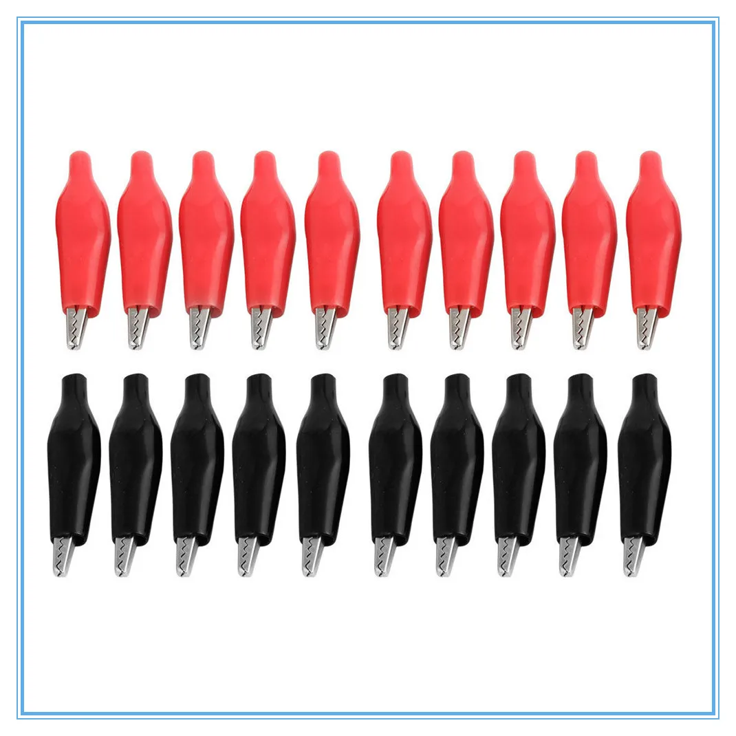 Зажимы для испытаний типа крокодил, 20 шт., 28 мм, черный, красный, с мягким пластиковым покрытием