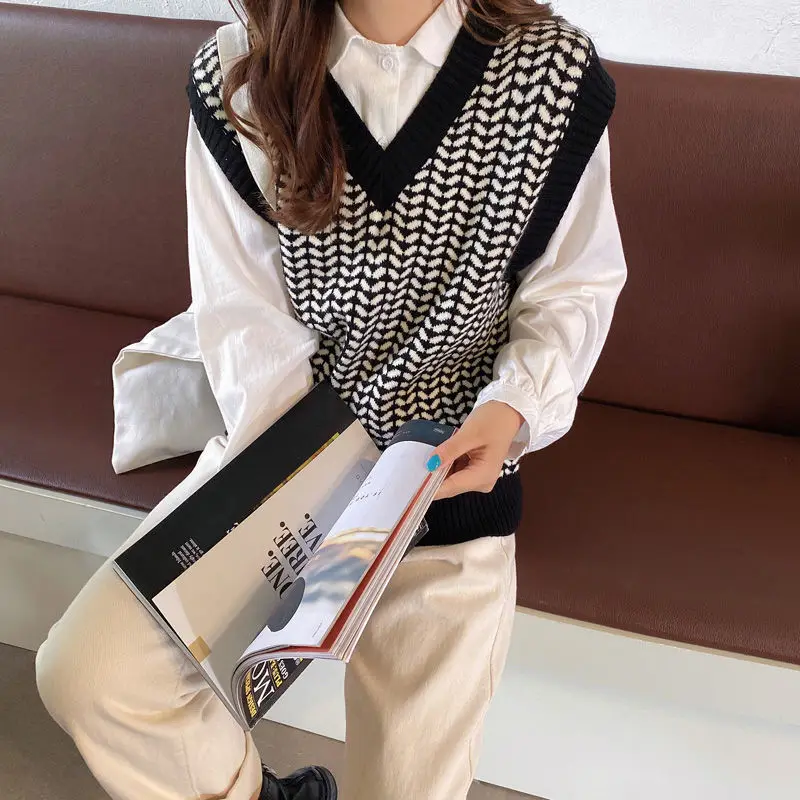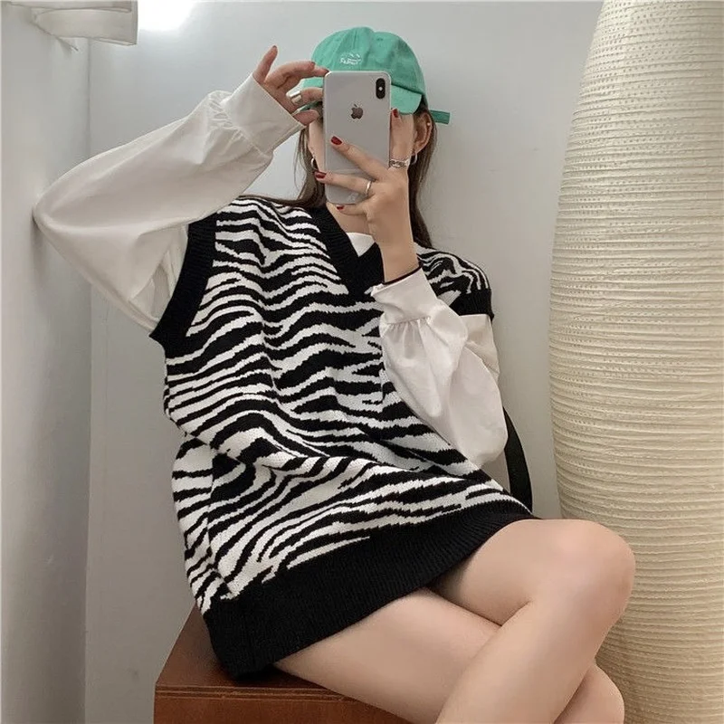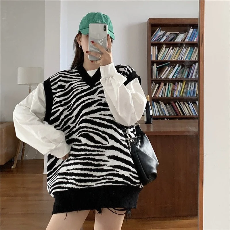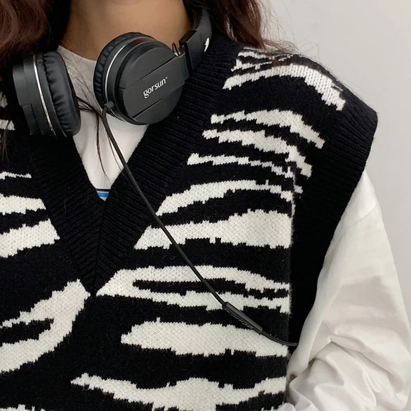 Женский свитер-жилет с V-образным вырезом и зеброй