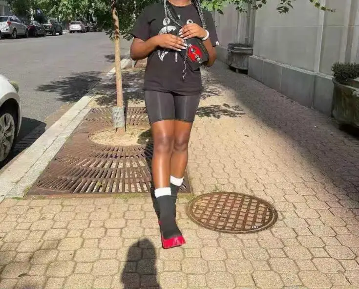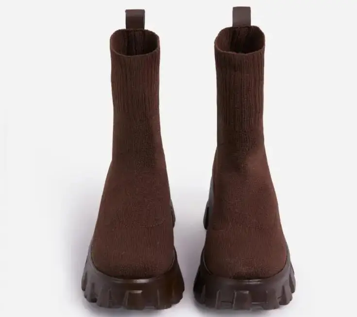 Женские ботинки на платформе, однотонные чулочно-носочные изделия, ...
