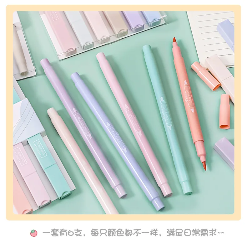 Новинка 2022, 6 шт., двухсторонний хайлайтер ярких цветов, маркеры ...