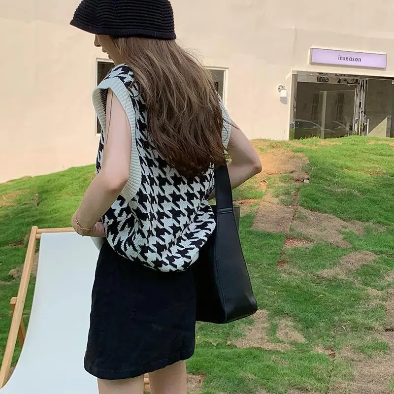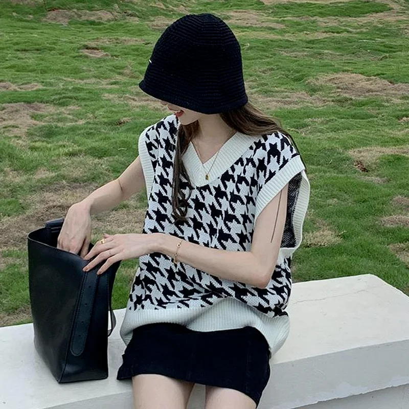 Жилет Y2KHoundstooth, пуловер, Женский вязаный жилет, новинка 2022,...