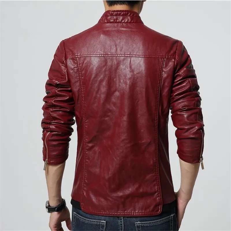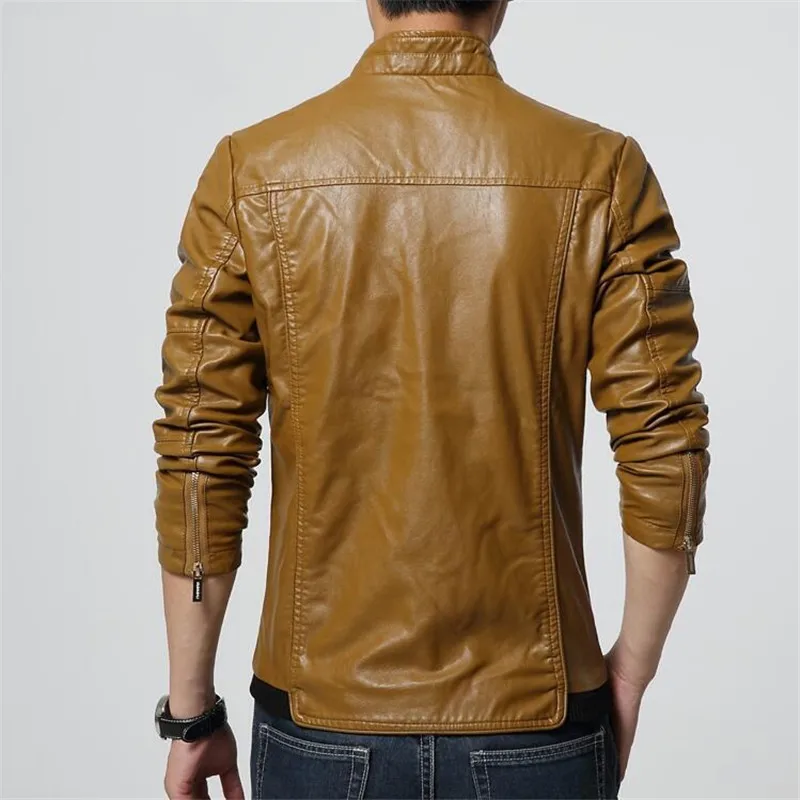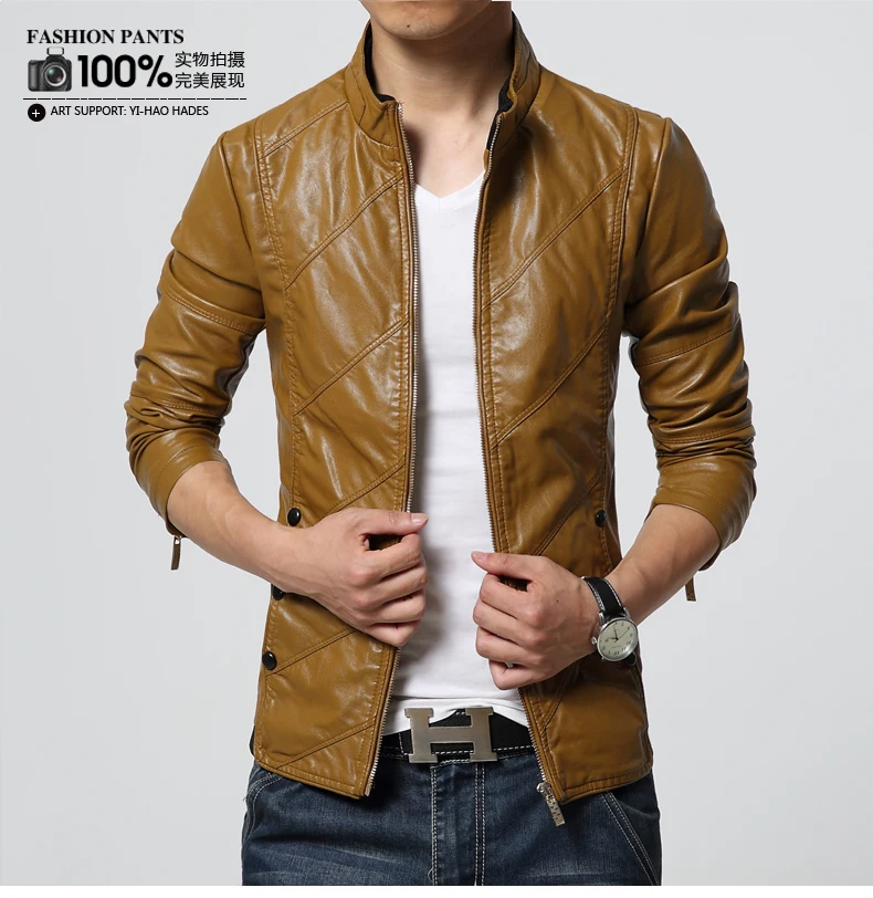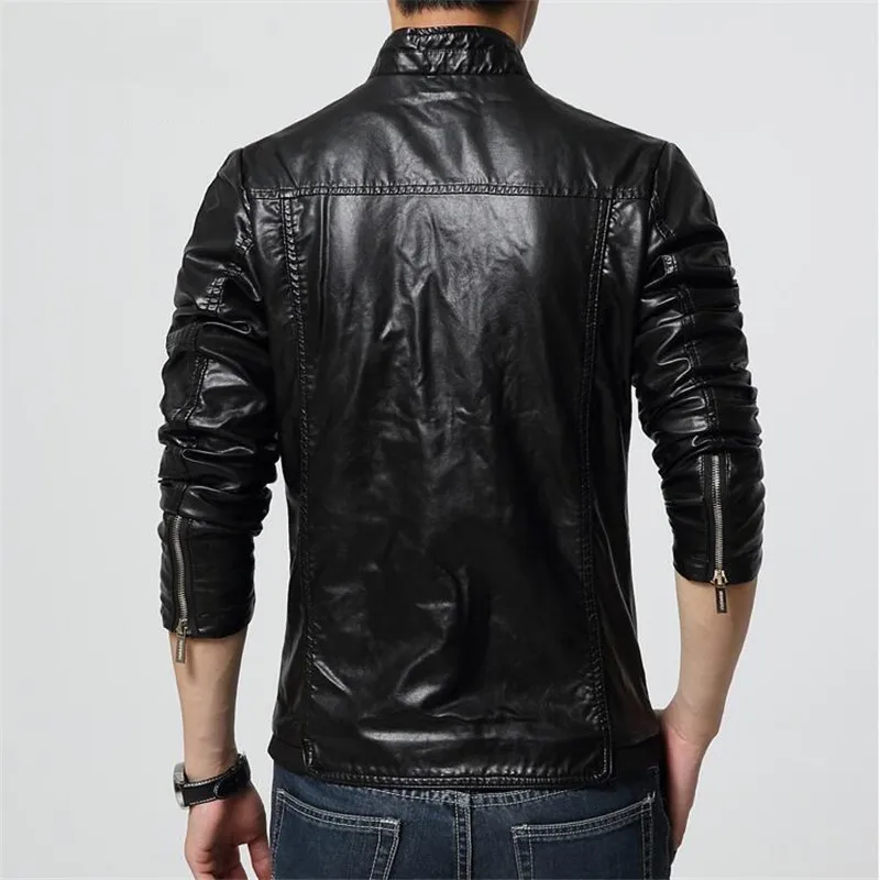 Мужская облегающая куртка из искусственной кожи с воротником-стойкой, 2020