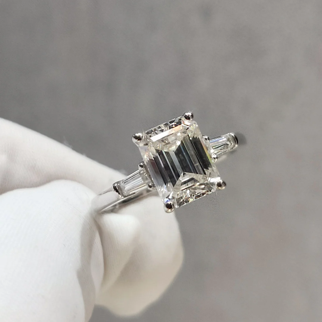 Женское кольцо с муассанитом и изумрудом, серебро 925 пробы, 2 карата