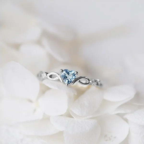 Новинка, простое маленькое свежее кольцо в форме сердца, Европейский и американский морской голубой топаз, фотография, подарок на день Святого Валентина