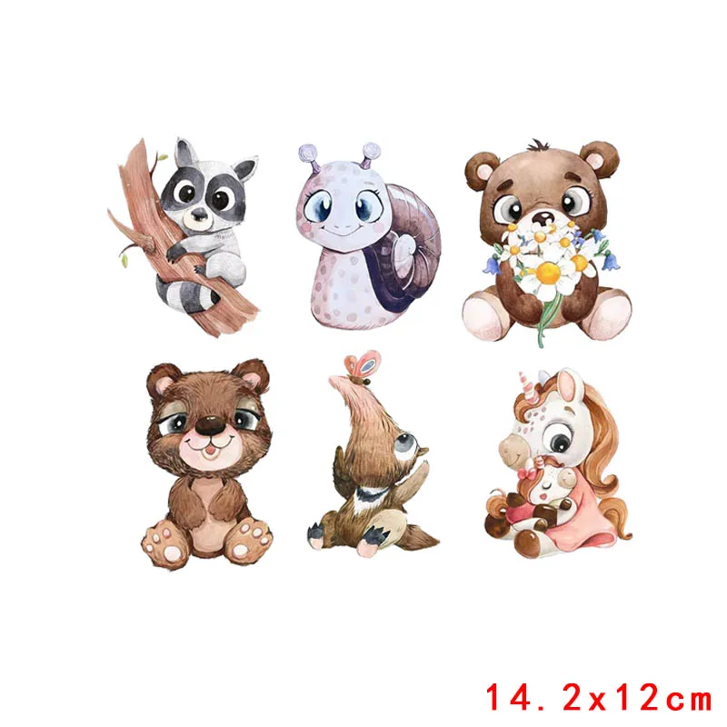 Термотрансферные наклейки с милыми животными на одежду, Мультяшные патчи, термоклейкие нашивки для одежды, искусственная аппликация