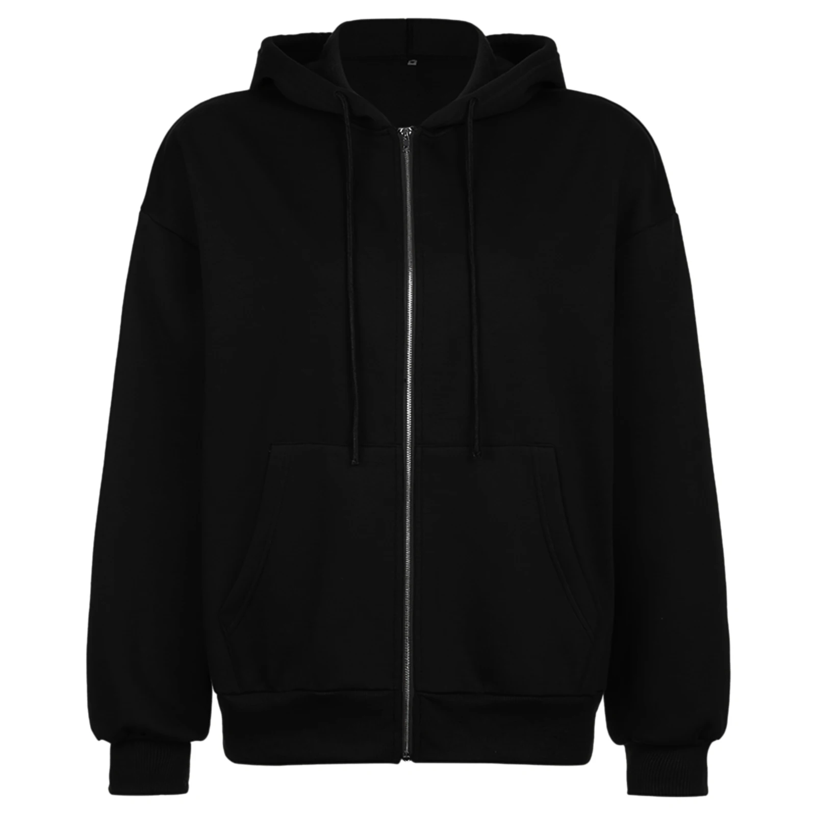Однотонные толстовки на молнии, женские свободные толстовки с длинн...