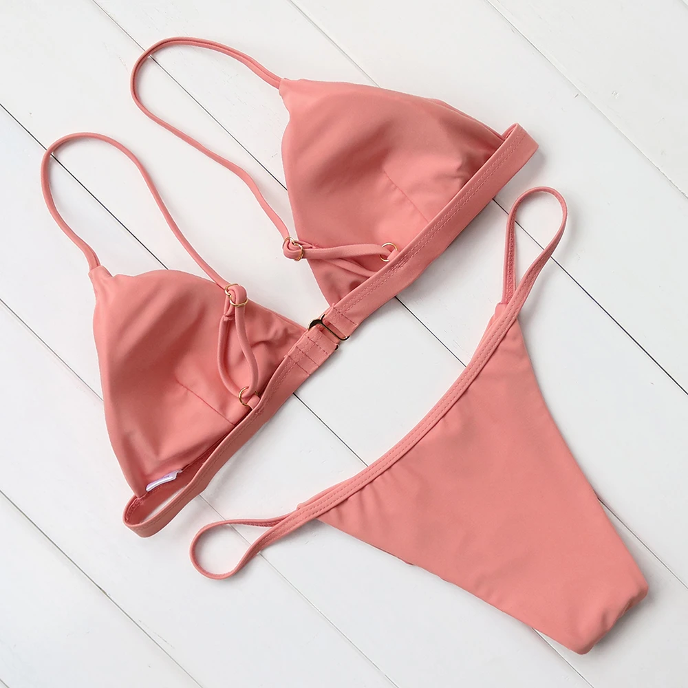 Сексуальное мини-бикини 2021, микро купальник, женское бикини на бретелях, комплект бикини, купальник с низкой талией, Одноцветный бразильский купальник