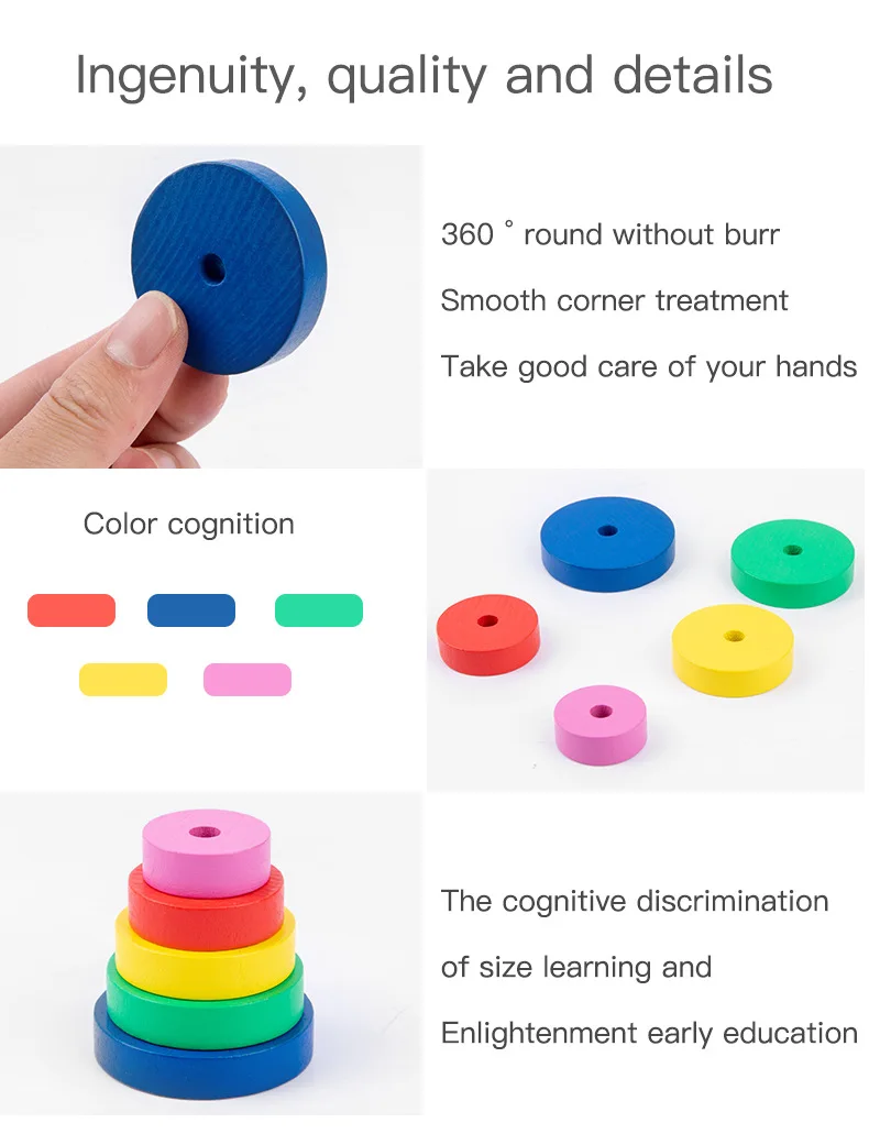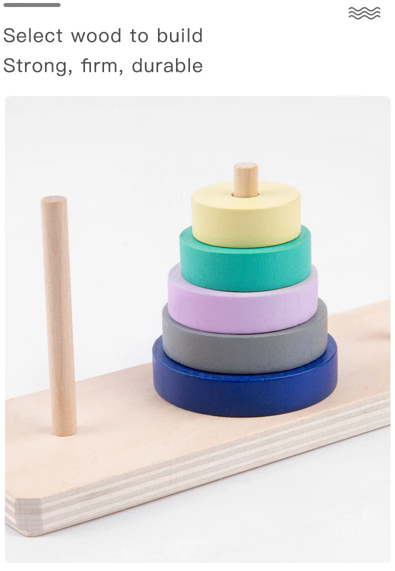 Радужная ханая башня, детские развивающие игрушки, деревянная головоломка, Штабелируемая башня, раннее обучение, классические математические детские игрушки