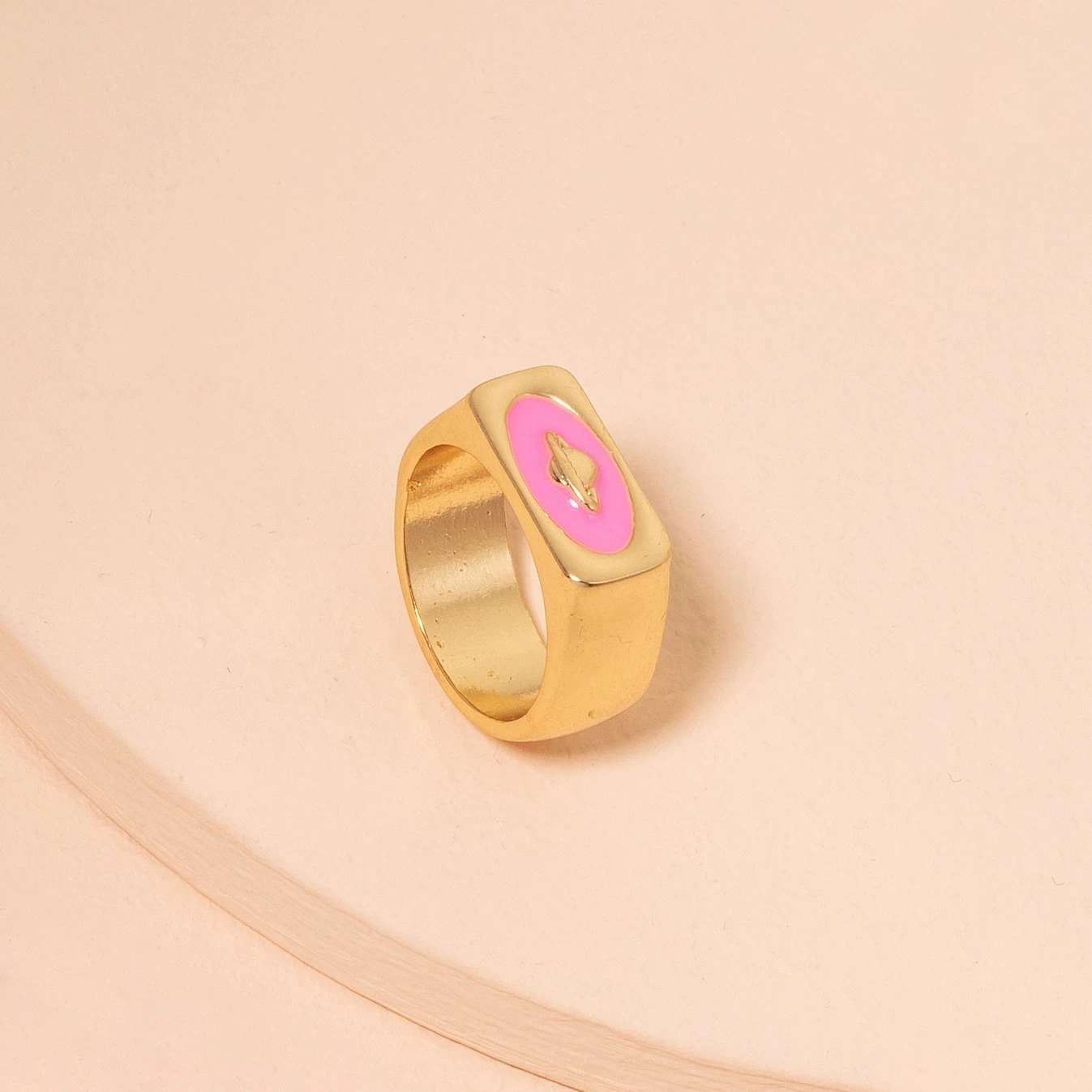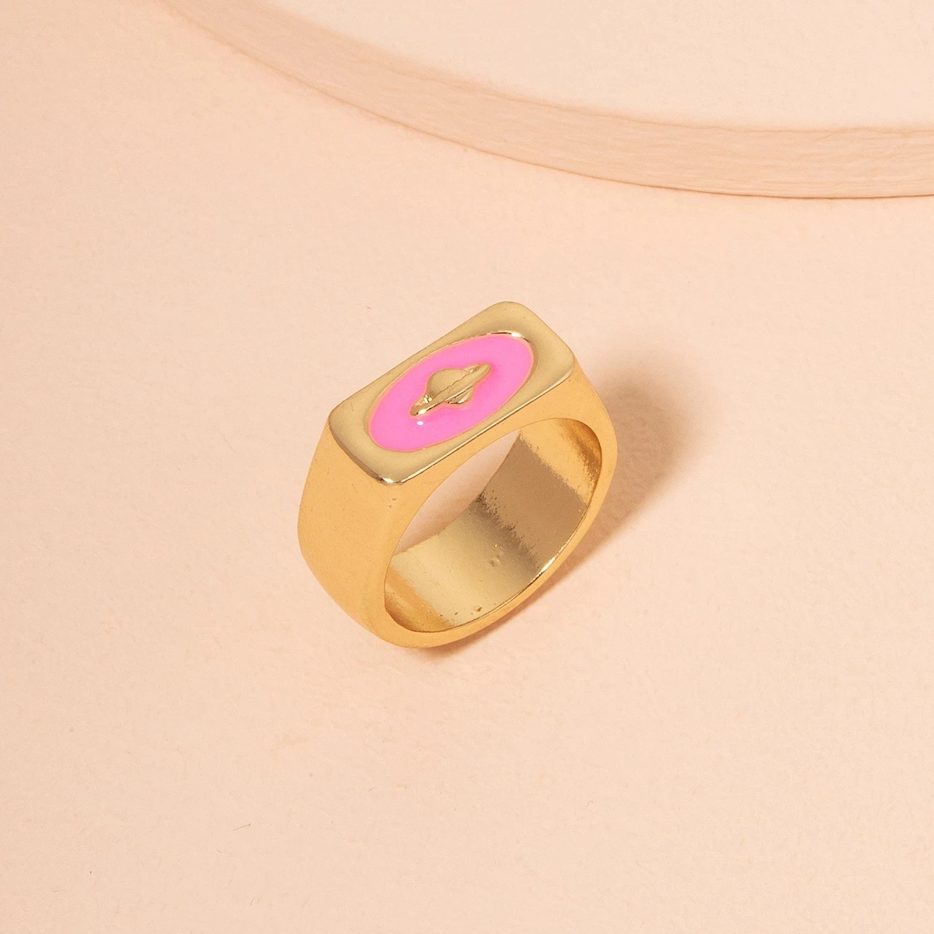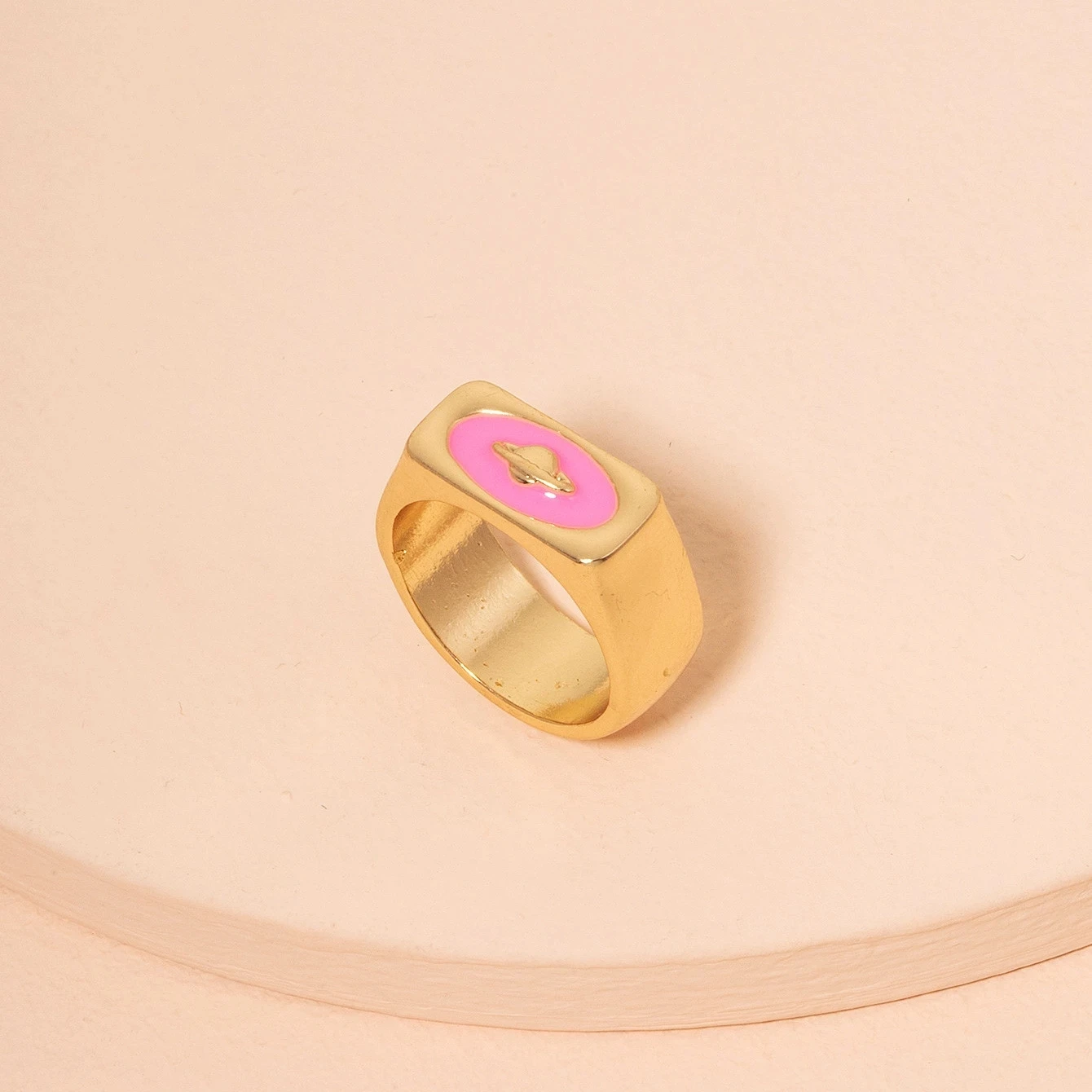 Кольцо женское, розовое, с рисунком в виде планеты, космос, 2021