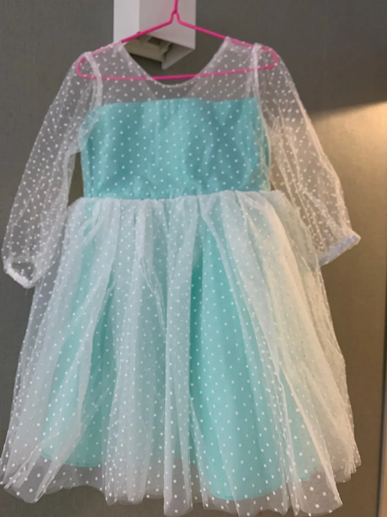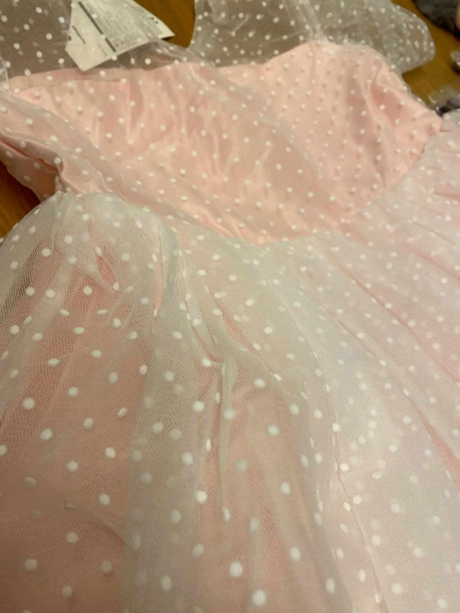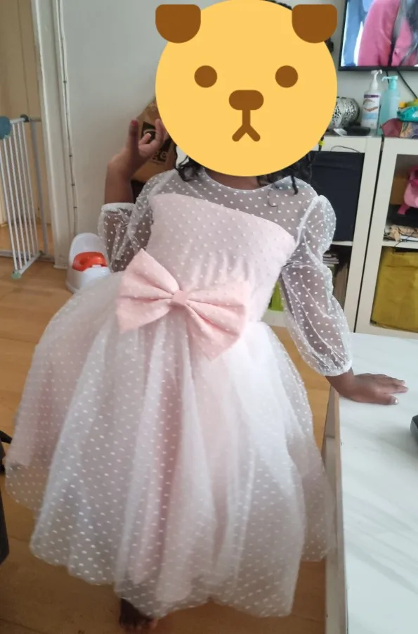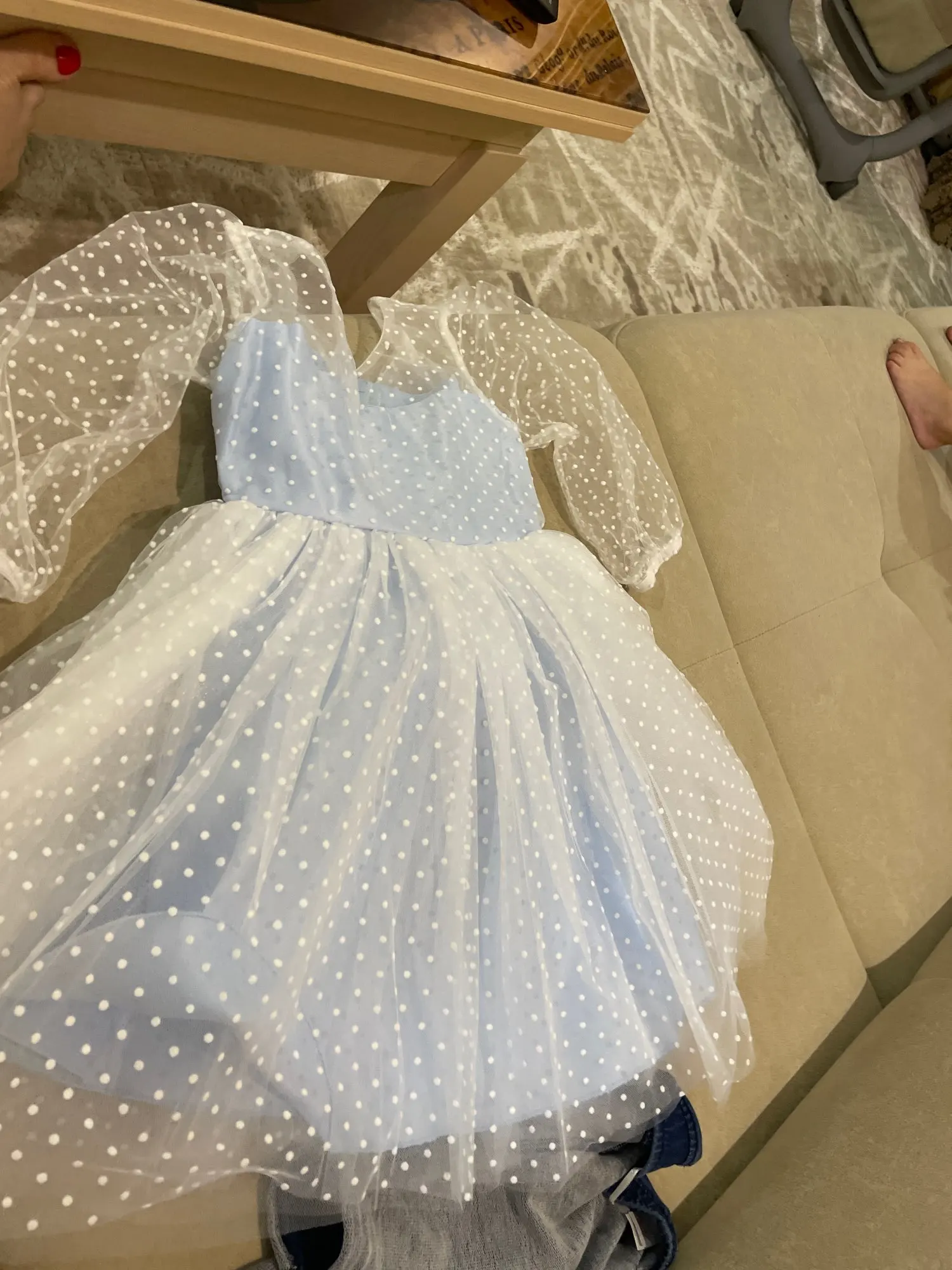 Очень нежное и красивое платье. Настоящая принцесса в нем. Размер 4T соответствует 98-104 нашему. На 3 года впритык. По трекингу должно было приехать 19, а доставили 11! Успели к празднику, хотя и не ждали