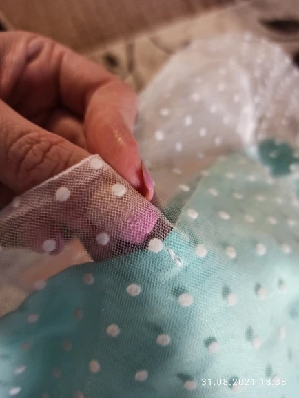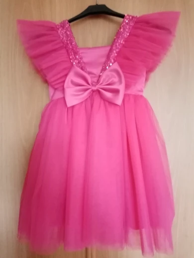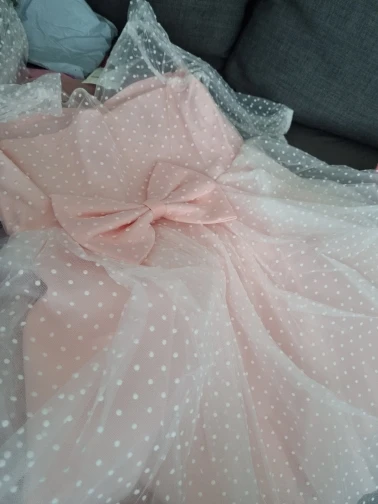 Очень красивое платьице. Вроде как по заявленным меркам пришло. Мягкой фатин, внутри несколько подкладов на пачке. Не колется. Нитки правда торчат, но не проблема обрезать. Бант съемный и спереди и сзади и без него можно)) .