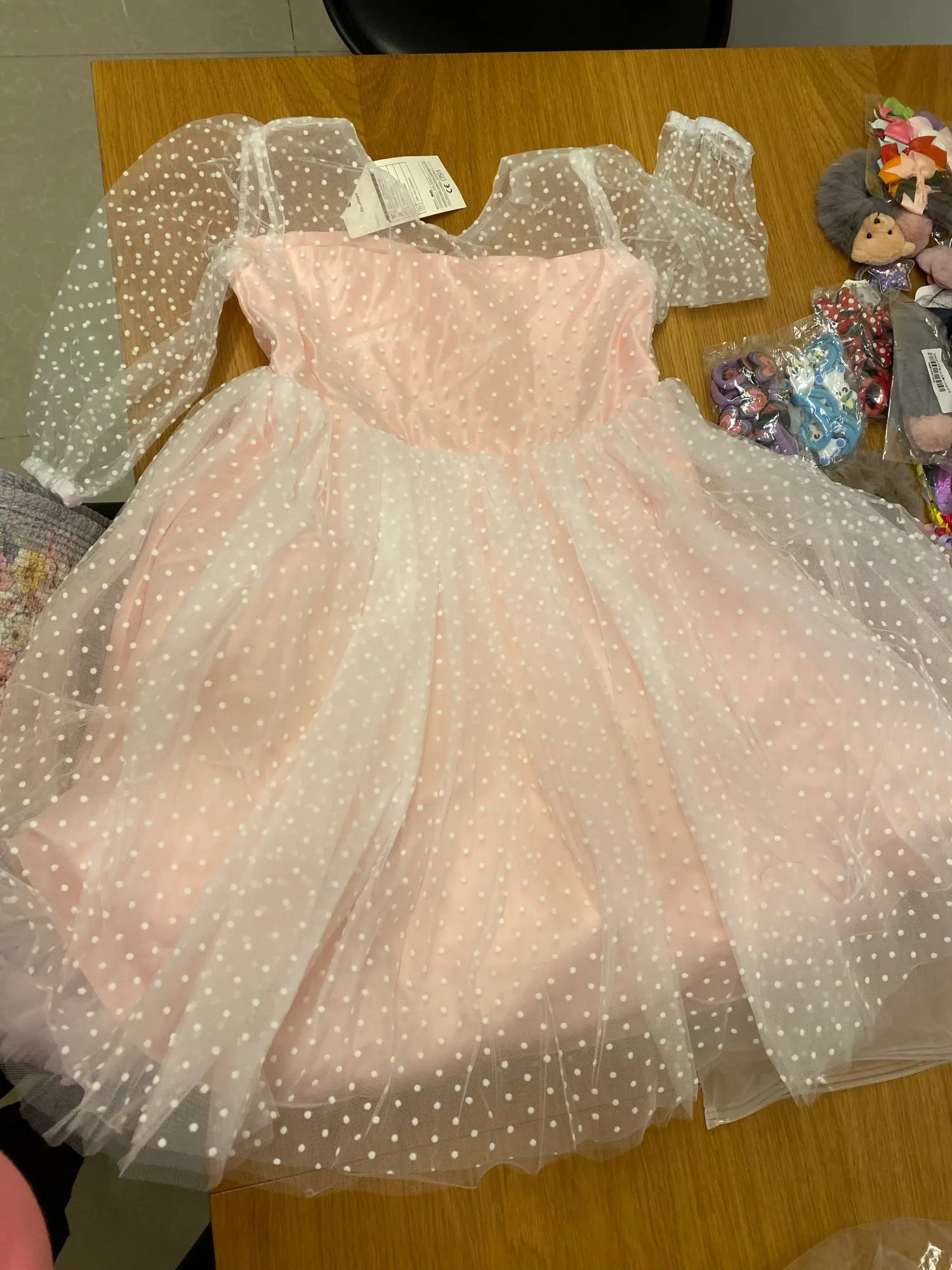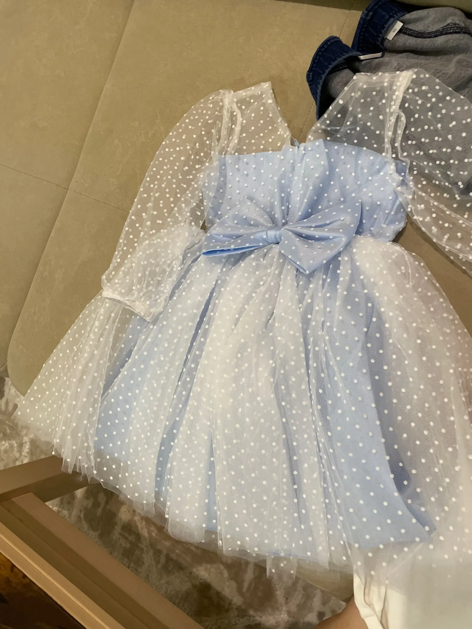 Платье принцессы в горошек для девочек, на свадьбу, день рождения, выпускной бал, детский фатиновый костюм с открытой спиной, Рождественский костюм, От 4 до 10 лет