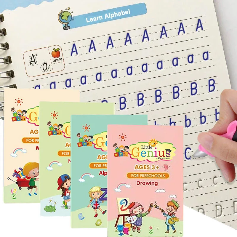 4 книги/набор, детская книга для рукописного письма, многоразовая книга, Волшебная книга для каллиграфии, английская цифровая книга для рисования
