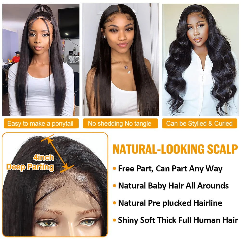 Прямые парики из человеческих волос на сетке спереди, бразильские парики для женщин, человеческие волосы с глубокой частью, прямые парики на сетке спереди, плотность 150%, QT