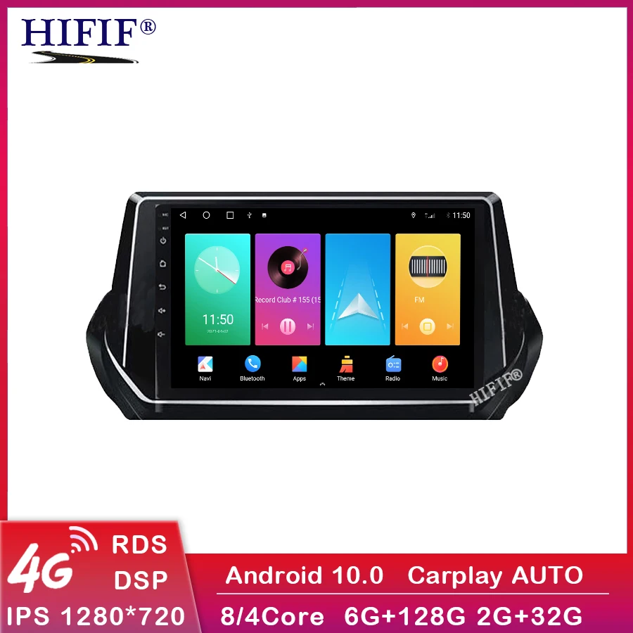 Головное устройство Carplay 2 Din, 6 + 128 ГГц, автомобильное радио dsp для Peugeot 2008, 208, 2019-2020, головное устройство с GPS-навигацией, Android 10, Wi-Fi, FM, BT 5,0