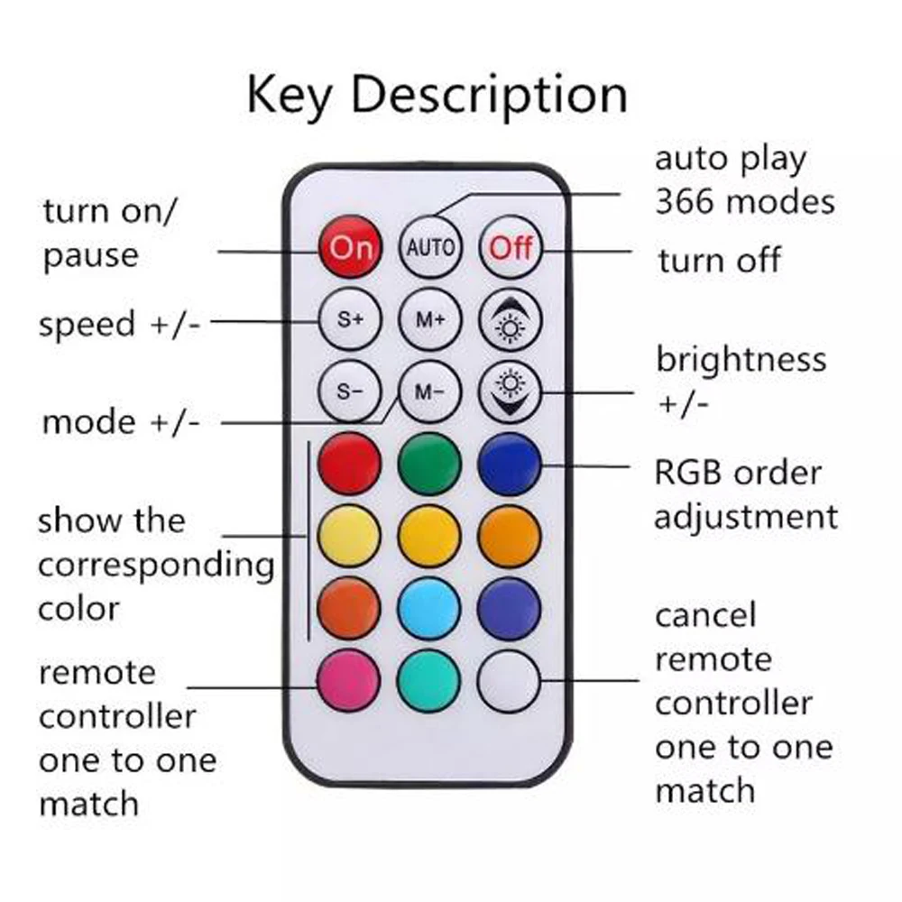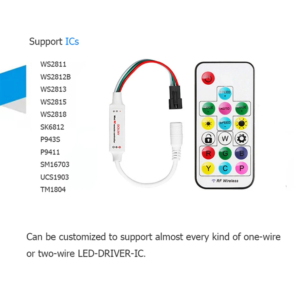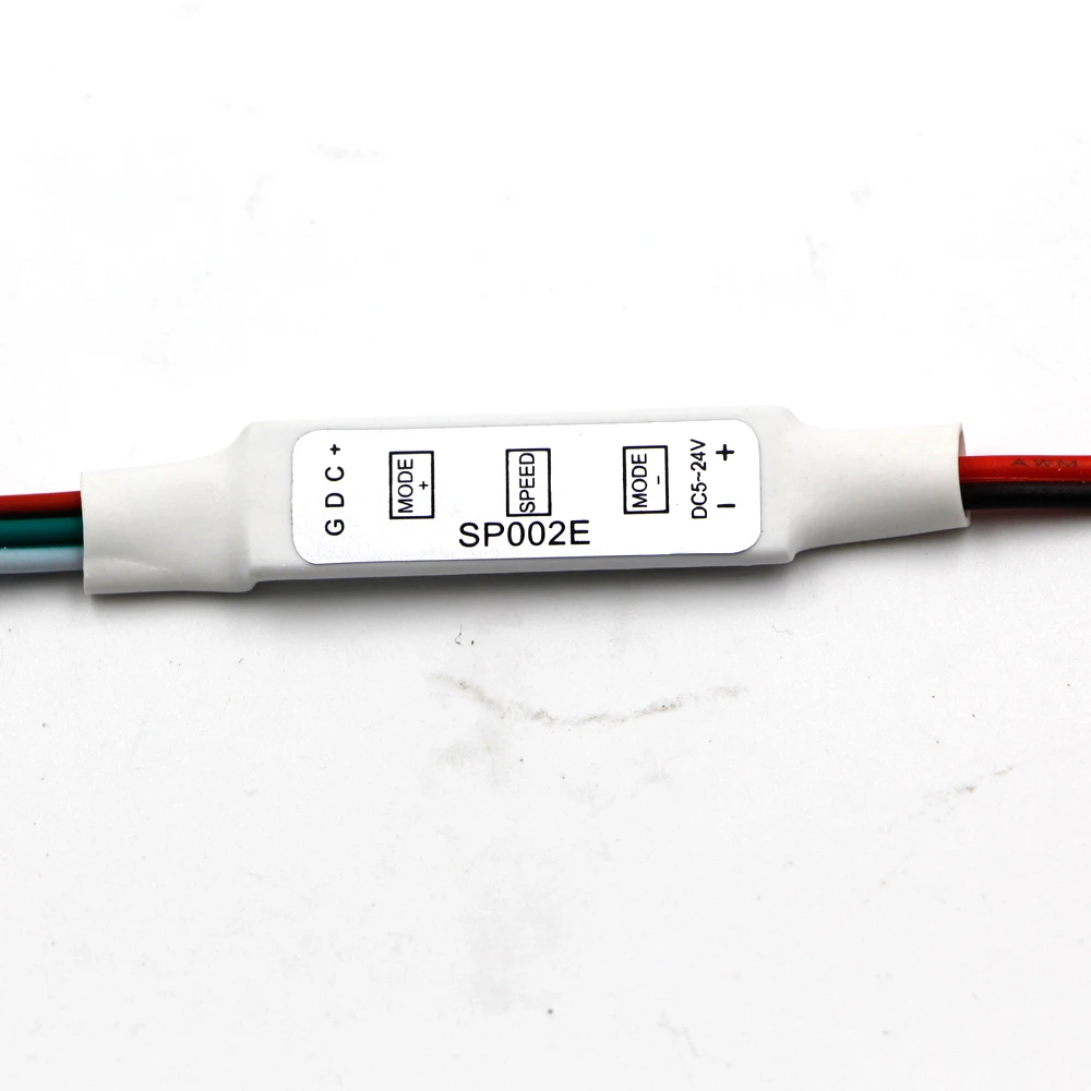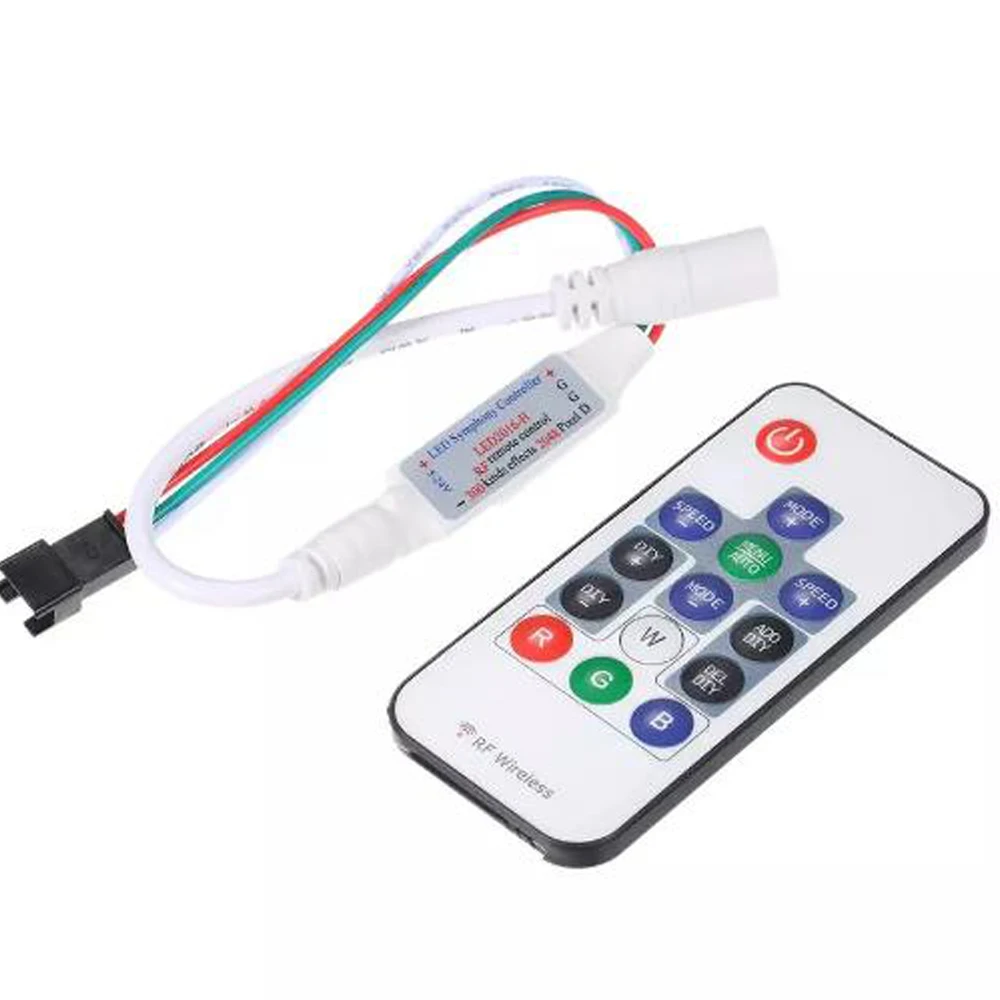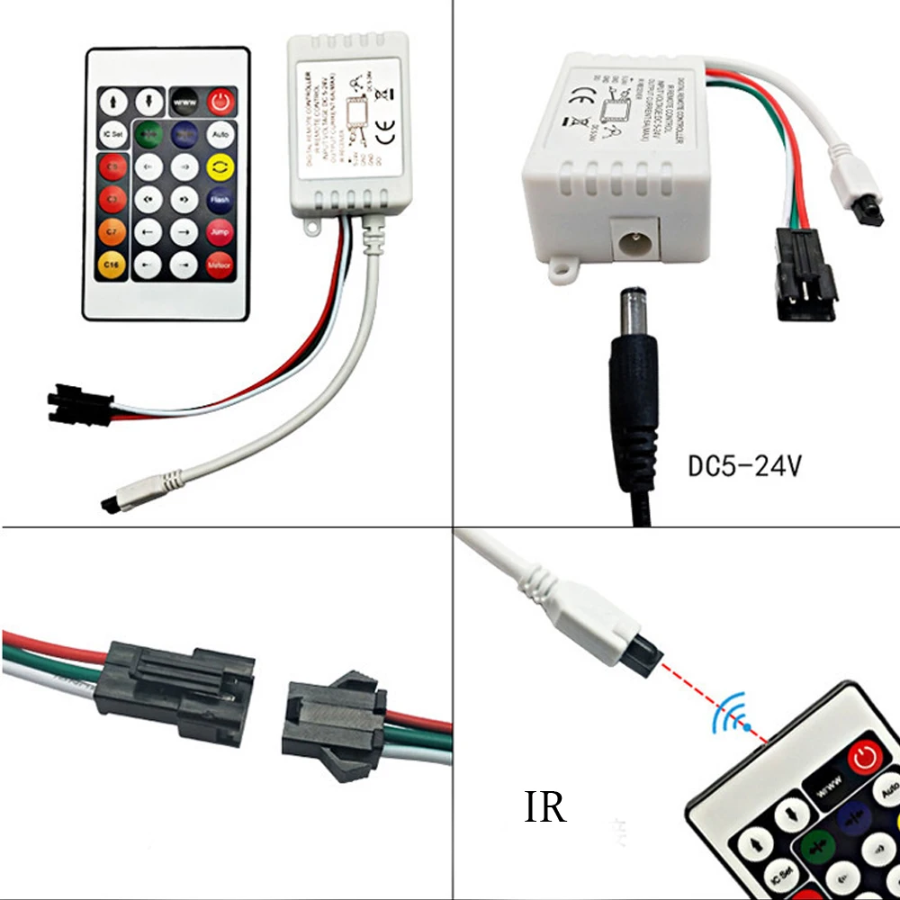 Одиночный wwwire выходной сигнал, поддерживает нормальный Ink1003,ucs1903,tm1804,ws2811,WS2812B и т. Д.Встроенный до 200 программ для пользователейВыбираемые светодиодные пиксели для управления (1-1000)Поддержка ИК-пульта дистанционного управления, Контроль расстояния до 15 метров