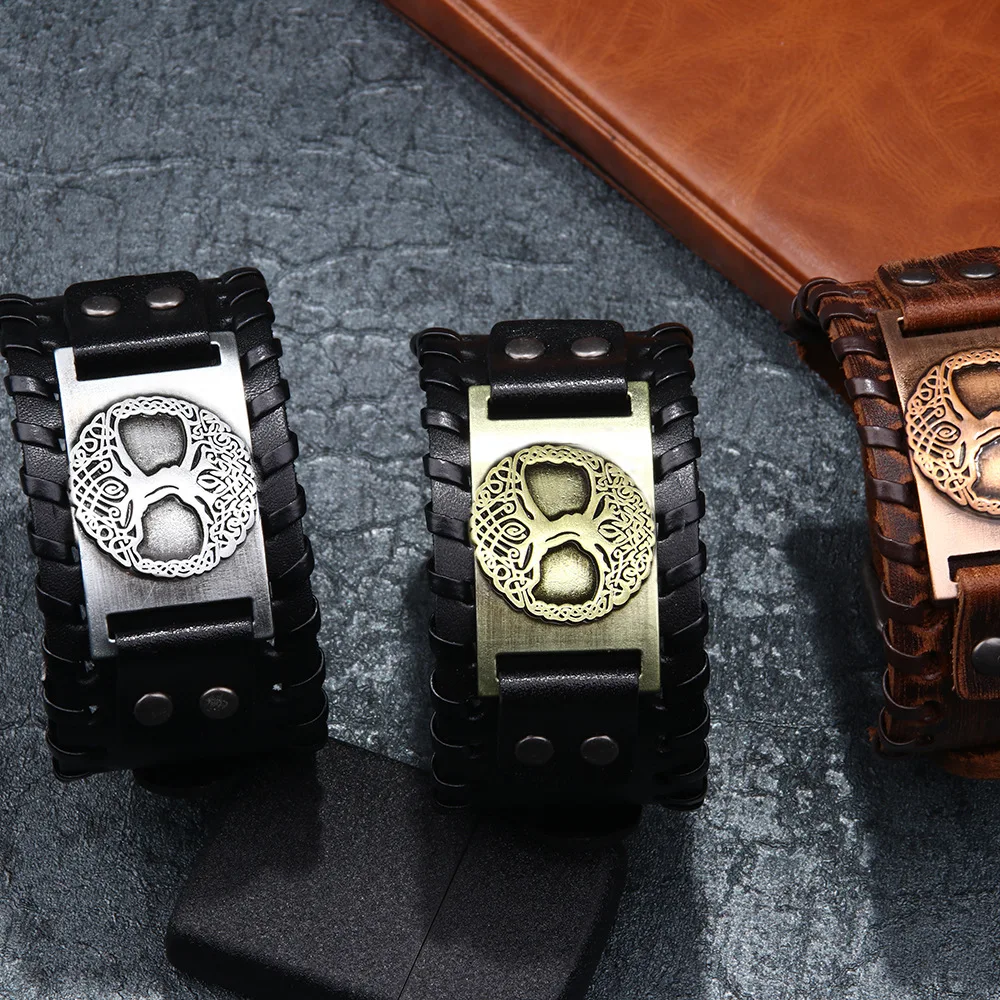 Toten дизайнерский женский браслет yggdril для мужчин, тканый вручную широкий кожаный браслет, регулируемые браслеты, ювелирные изделия в стиле панк