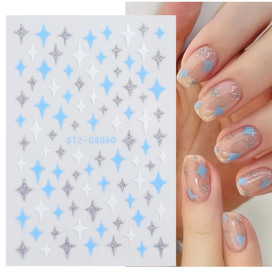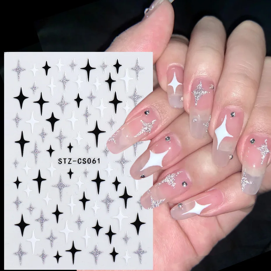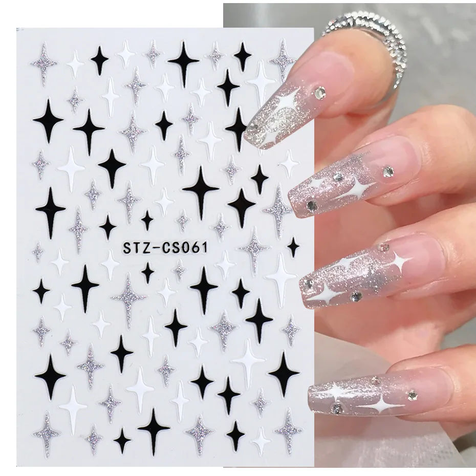 [Тип продукта] 3D стикер для ногтей[Стиль] блестящие Серебристые звезды 3D наклейки для ногтей черно-белые дизайны украшения слайдеры из фольги для дизайна ногтей маникюр[Цвет] серебристый/черный/белый/золотой/синий/красный[Упаковка] 1 лист[Размер] 9,6*6,3 см[Применение] рекомендуется использовать на гелиевом покрытии и закрепить гелем