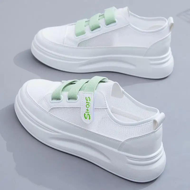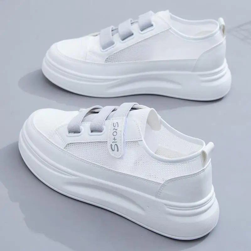 Туфли женские сетчатые, тонкая универсальная спортивная обувь, дышащие, на липучке, для отдыха, белые, лето-осень 2021