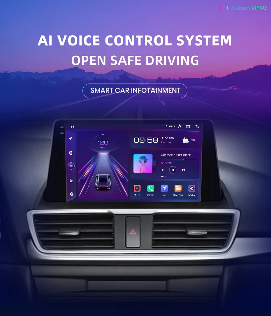 Автомагнитола Junsun V1pro с голосовым ии, 2 din, Android, радио для Mazda 3 Mazda3 Axela 2013-2017 Carplay 4G, Автомобильный мультимедийный GPS, 2din Авторадио