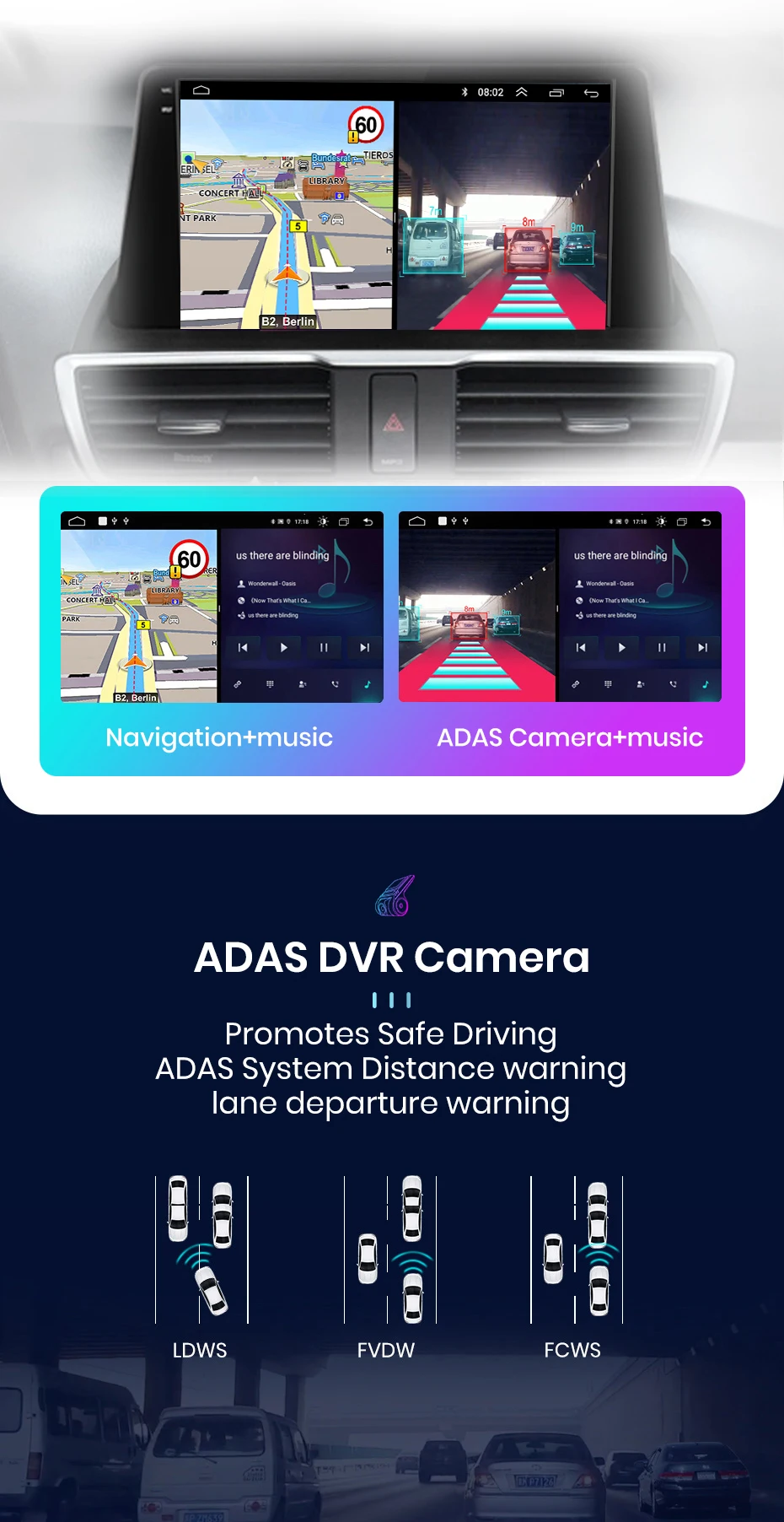 Вы можете использовать навигацию и другие приложения одновременно, такие как прослушивание музыки или включение функций ADAS и т. Д.