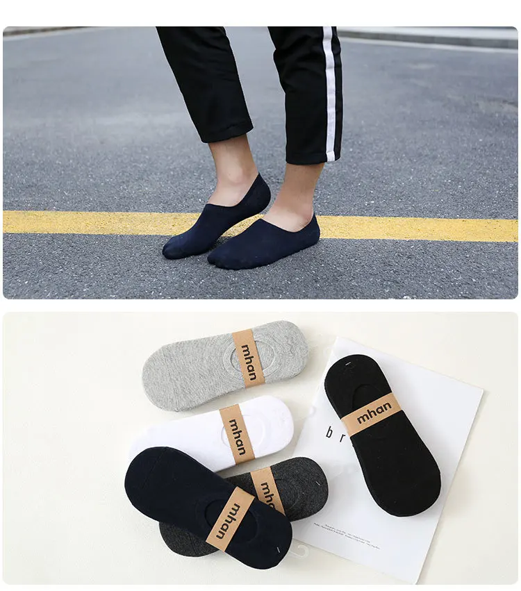 5 пар/лот, мужские хлопковые невидимые носки без пятки, Нескользящие летние однотонные силиконовые короткие носки, модные удобные носки-башмачки, 38-44