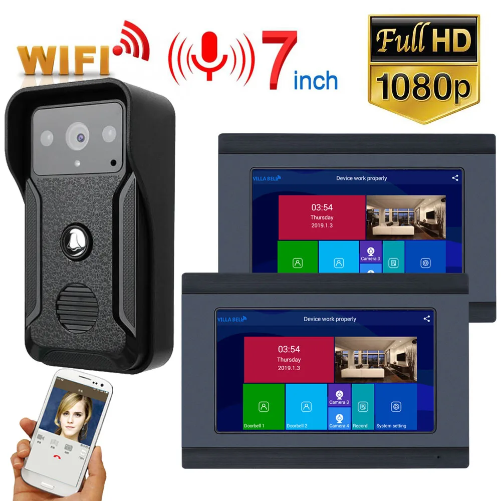 Видеодомофон, 2 монитора, 7 дюймов, проводной, Wi-Fi, домофон, входная система с HD 1080P проводной камерой ночного видения