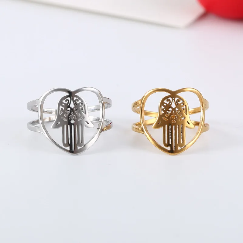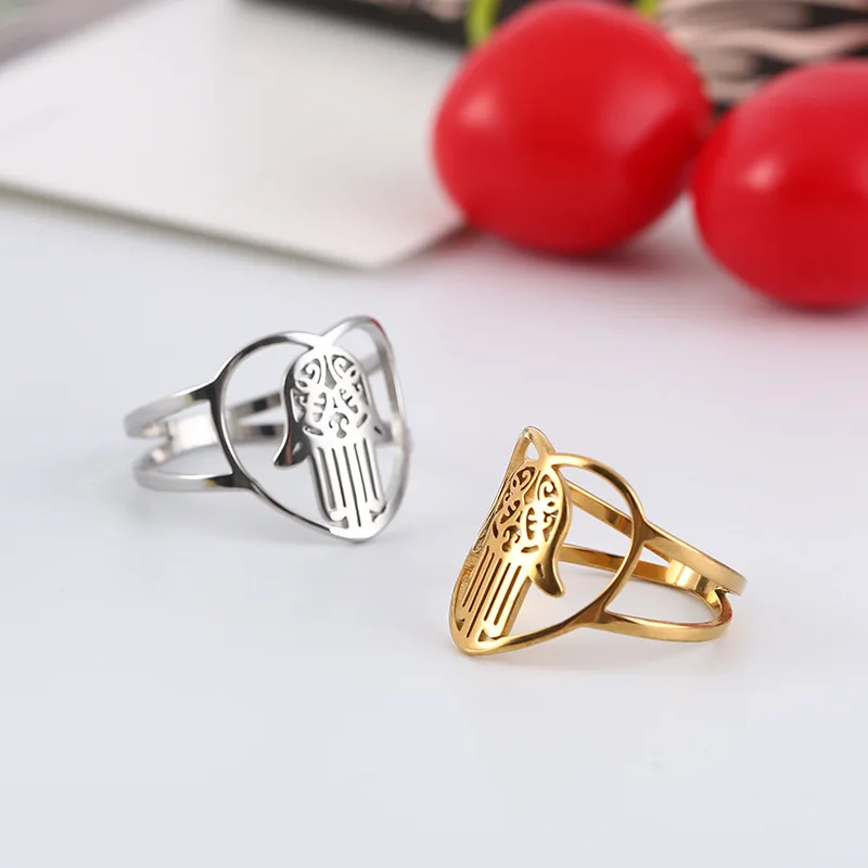 Изящное Рука Фатимы Хамса кольцо из нержавеющей стали кабала еврейские счастливые ювелирные изделия Изящные женские мужские свадебные кольца для друзей подарок 2021